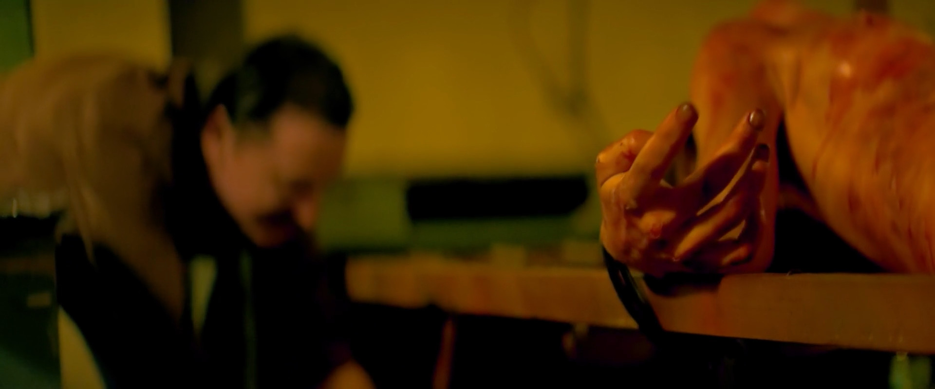 Here is a description of the scene: "Daniela Ramírez lying naked on a metal cot showing her breasts and hard nipples as a guy uses some jumper cables to electrify the cot causing Daniela to arch her back and shake as she's electrocuted until finally he stops and she lies there looking around while he starts to take off his pants."