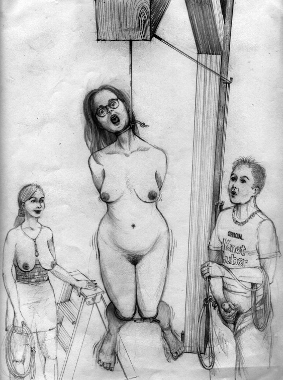 Here are a couple of revisited images for this thread: XXX superstar Mandy Dee in a authentic garotte chair setting, and a captioned image from an unknown artist.