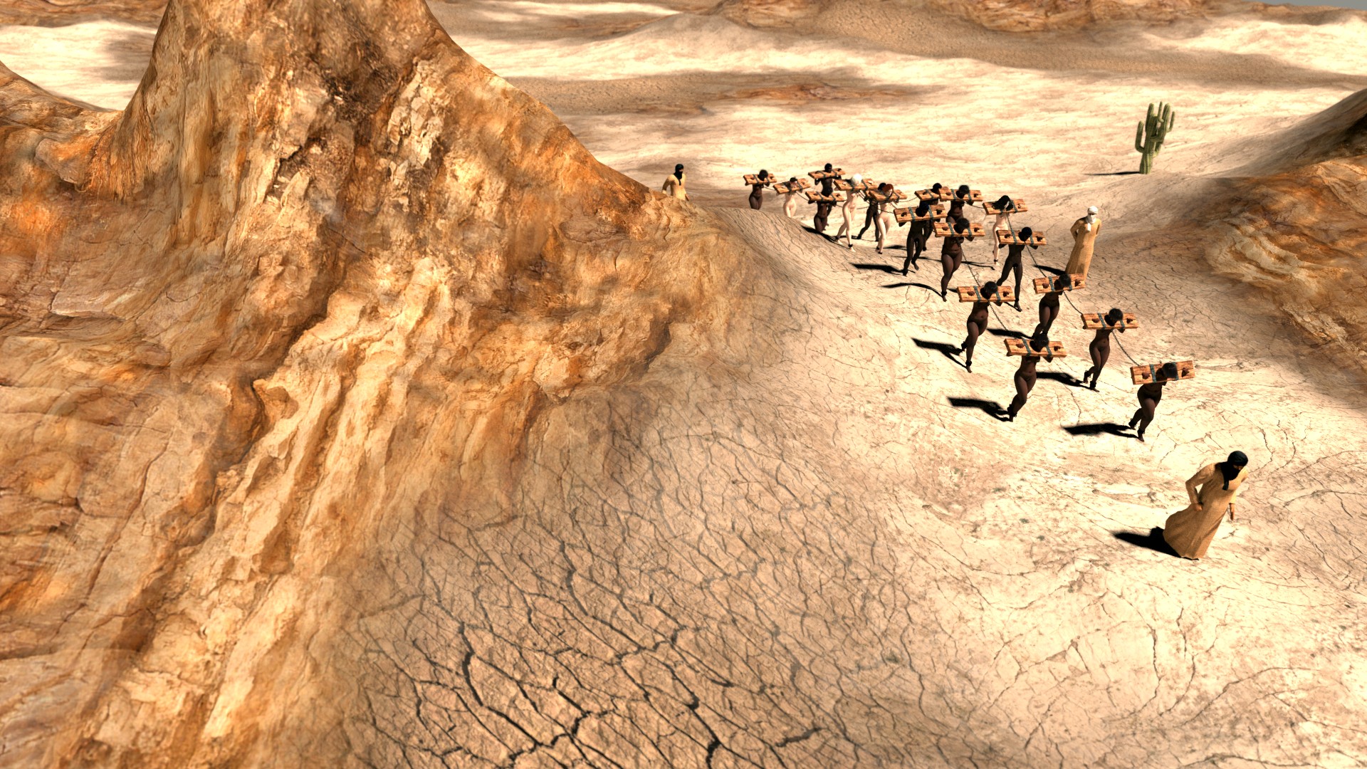 Here's the moment immediately after Yen finished serving the customer and being returned to the chain, while the rest of the guards are having a bit of relaxation as well. After all, there's another three days of walking in the desert till Dulla.