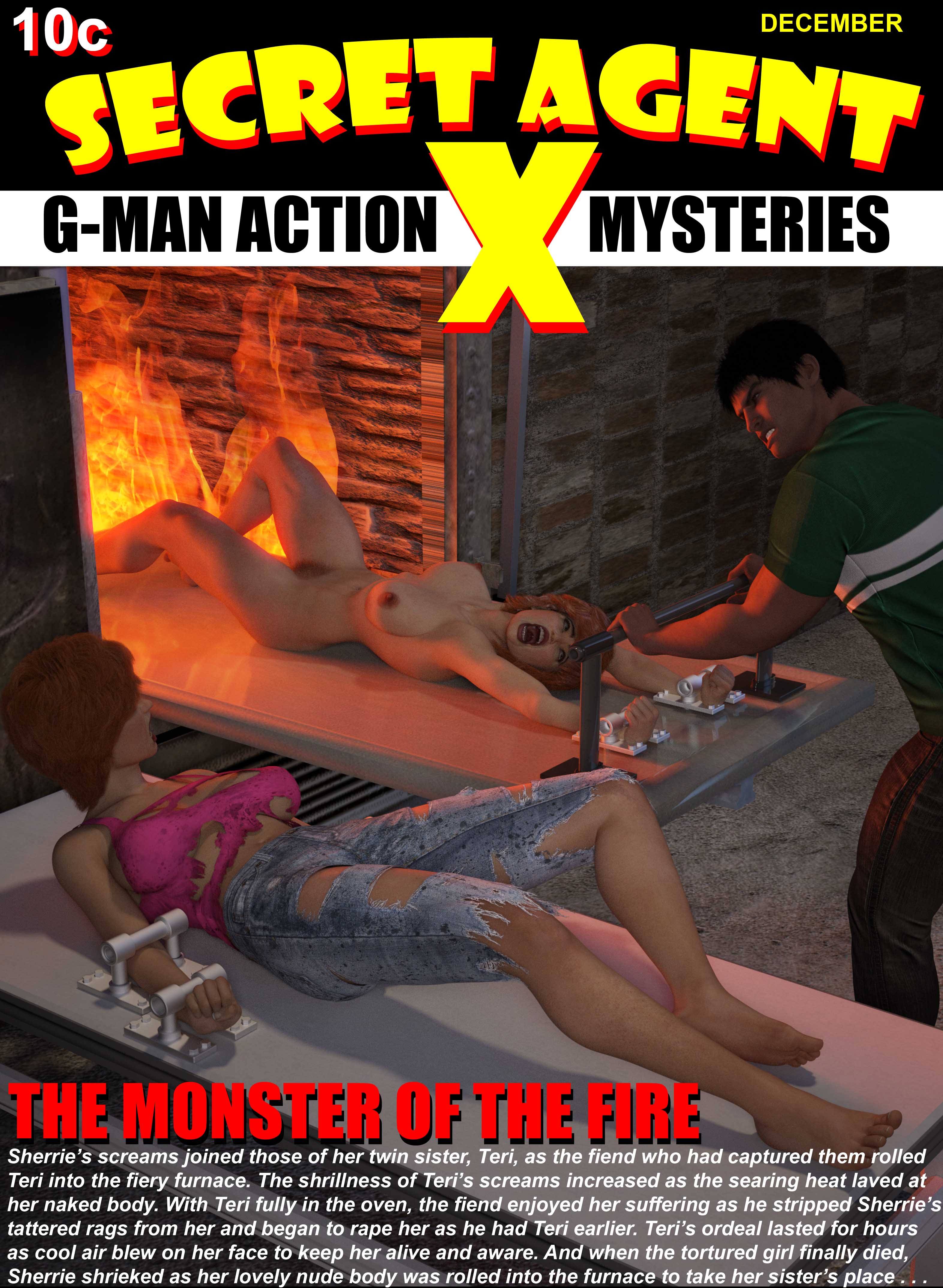 My creative juices seem to be flowing, though the audience seems rather unimpressed. But here's my version of another Men's Magazine, Adventure 1963-04. Sorry about changing from snakes to fire, but a single bite from one of these venomous snakes would give a victim a rather quick death. My interest is in slower forms of torment, so I made the change. I also changed out the guy for a second gal and made them both captured nurses. Artist's prerogative, you know! :lol: