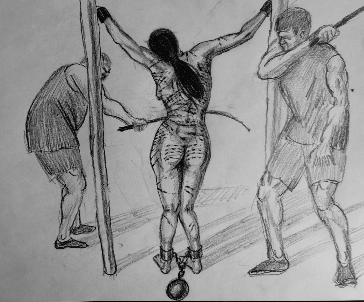 2) Chris Collins, secured in the stocks (in an interesting position) and whipped,