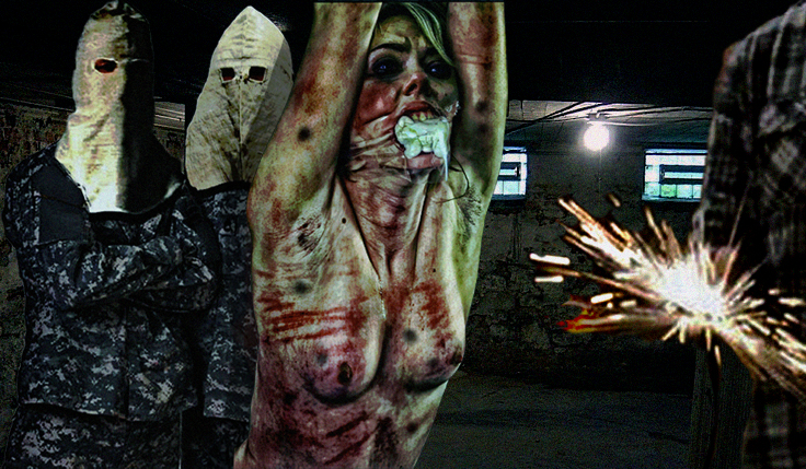 I love the idea of an innocent woman being worked over by a brutal dictatorship - she's completely helpless with no hope of rescue - she's trying to hold out to spare the other women but it won't be long before they loosen her tongue!