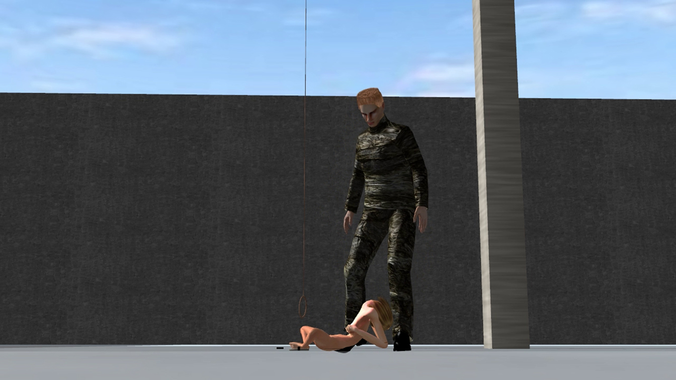 Time for a rest after his hard work. She only waits for the prisoners on clean up duty to arrive with the barrow to take her remains to the incinerator.
