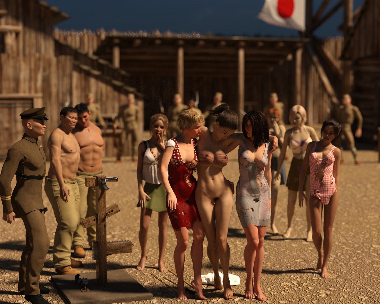 That scene is so erotic. Thank you for posting. Your work is so incredibly lifelike as are the whip marks across the lovely breasts. I would not be surprised if some women POW's received punishments like that from the Japanese. These pictures certainly got me aroused! Thank you. Laura
