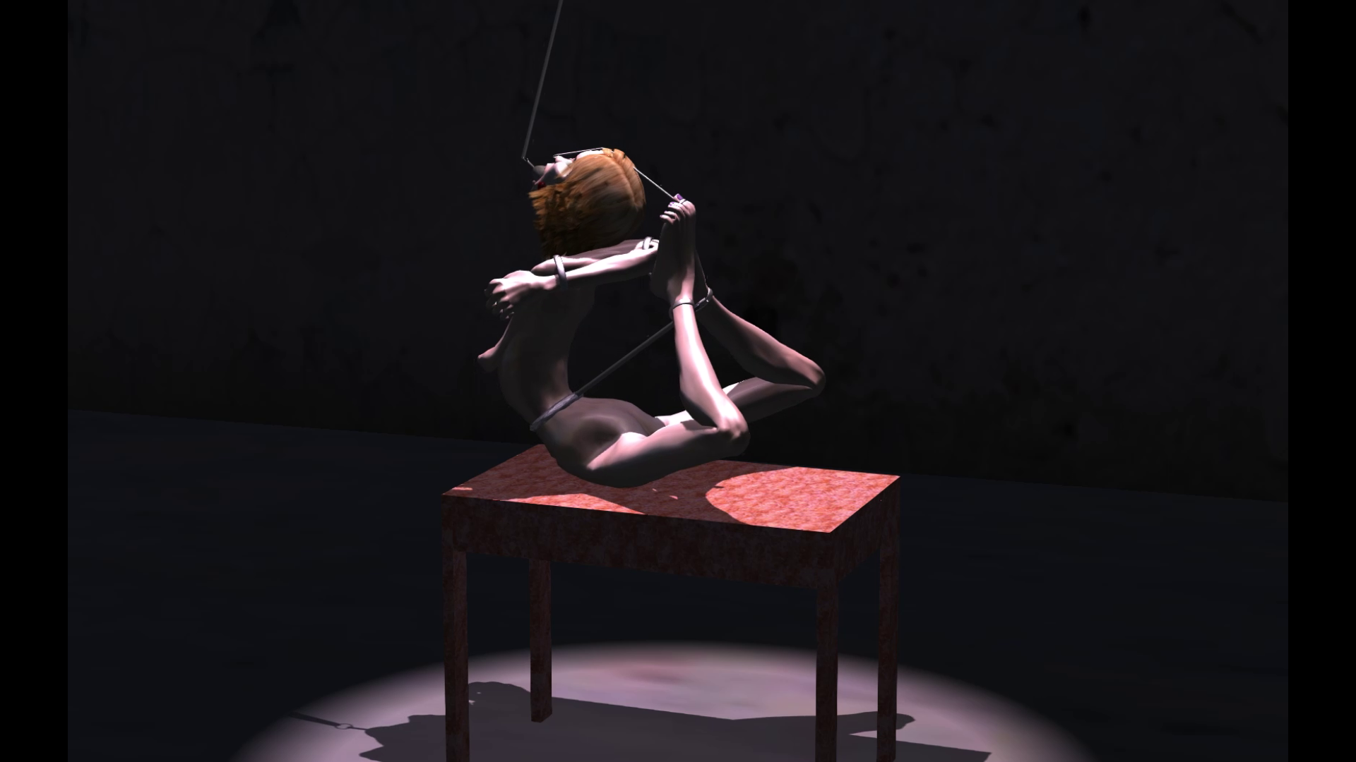 This victim is alone and only checked on every hour. She labours to breathe with the noose so tight.
