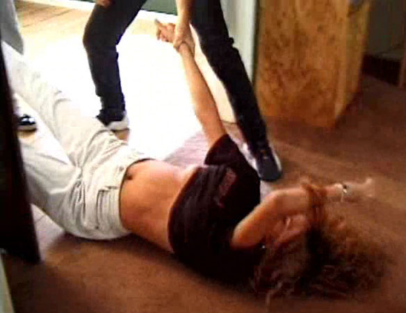 Cate Dee, stripped and groped before the whip (and electrotorture, and the ziptie strangling