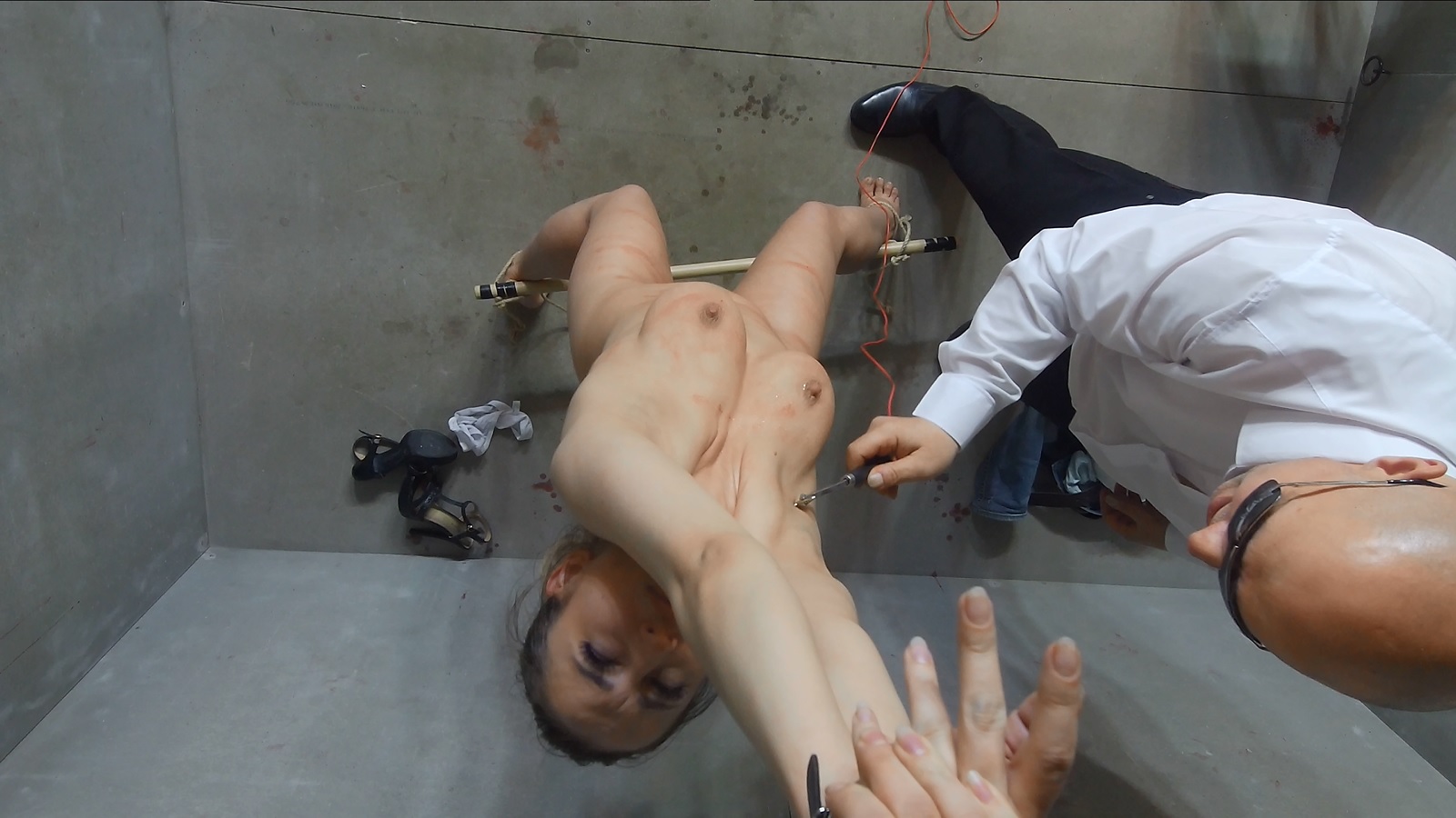 I tried to torture my wife's cunt with some Chinese "torture" device. Made from sporting massage device. Not enough for real torture of course. She felt only tickling on her nipples. Only plug in her cunt caused some wriggles and moans. Not close enough to what Alex doing with his lovely victims. Sorry about crops and everything.