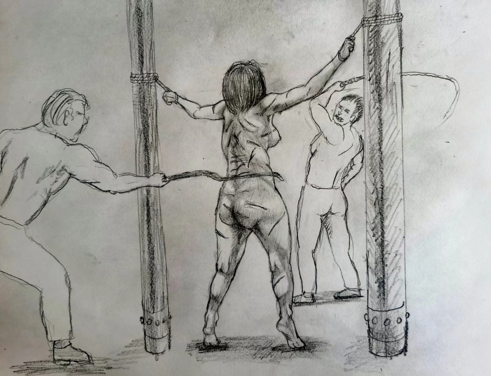 Dear Laura,Thank you for liking it! Yes, I think that when a person is in pain, the muscles are tense and will not appear in a very relaxed state. During the torture, the body will naturally avoid, rather than cater to the torture device. The executioner should be excited or cold, which is the proper state of torture. Of course, when it comes to painting, it requires some knowledge of anatomy, which I am not skilled enough in. I have changed this painting many times, hoping that it can present a more real state. Oh, wulf, my friend, thank you for your continued attention, I hope I can draw at least I feel satisfied with the painting, will be sent here, it may take time.wulf wrote: ↑Mon Dec 04, 2023 2:40 pmI very much agree with Laura's every word. I too enjoy the mature body type in this image. Very well done Sir, and thank you for posting.Laura wrote: ↑Mon Dec 04, 2023 10:27 am You are a very talented artist in that you capture the woman's body reaction to the belts and whips in a very realistic way such as lifting her body up onto her toeas and moving her body forward against the bindings holding her. I also like the woman's body type being more typical of a mature woman. I also like that the focus is on woman's body which is drawn in detail while the men are not . Thank you for posting your artwork and pray continue!