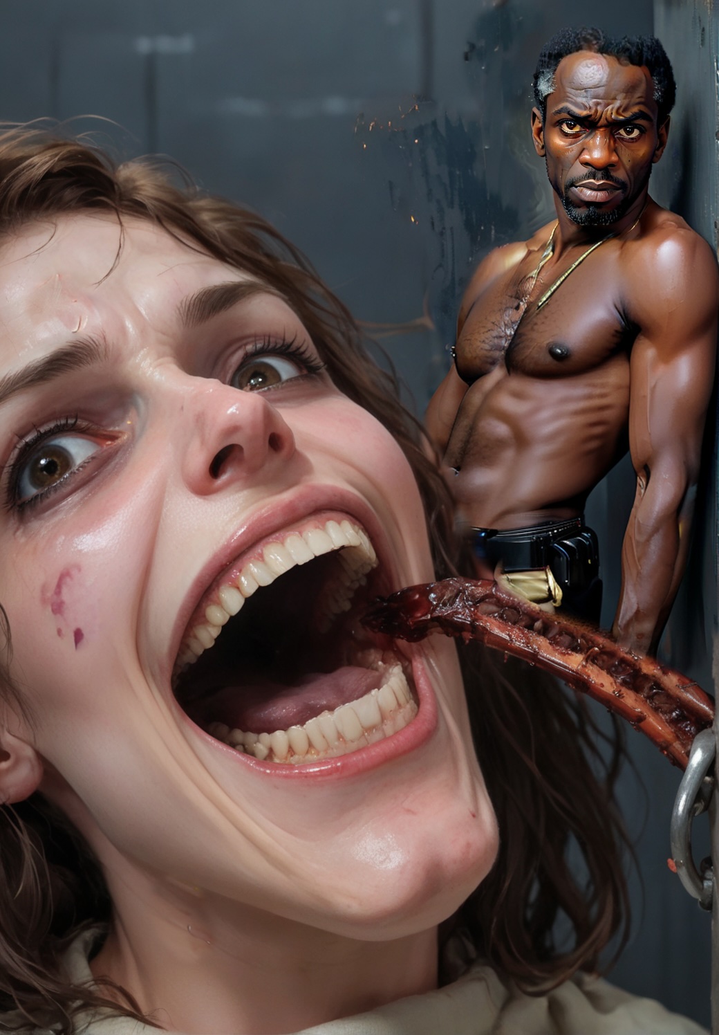 "The lesbianism in business executive bitches is corrected with a big tasty cock", an officer told her, he stripped naked and r@ped her a couple of times in the chair.