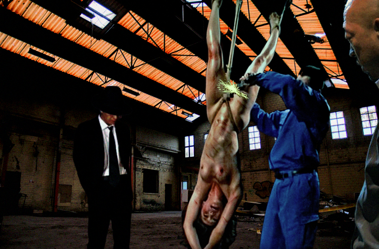 There is something about thighs wide open on a cross. I can't really pinpoint it. The backgrond is from Scorsese's "Last Temptation of Christ."