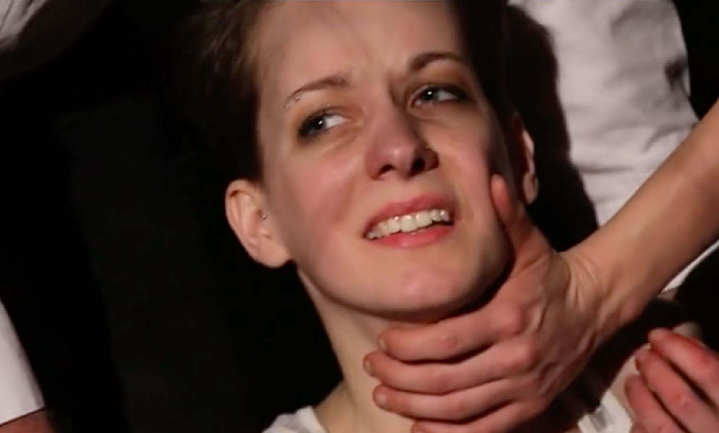 Lora Cross getting some lashes before she's ravished