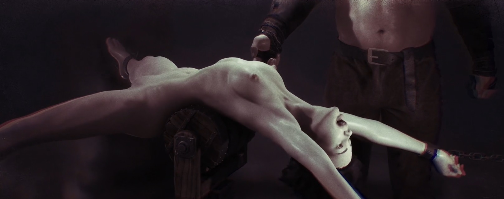 BTW, those not familiar with Cindy Prince, there was an element of reality to her videos. So you can be certain that at some point she was stretched tightly, if not being tortured on that rack. Also the element was probably really being heated in the fire and was probably pretty hot when pressed to her skin.