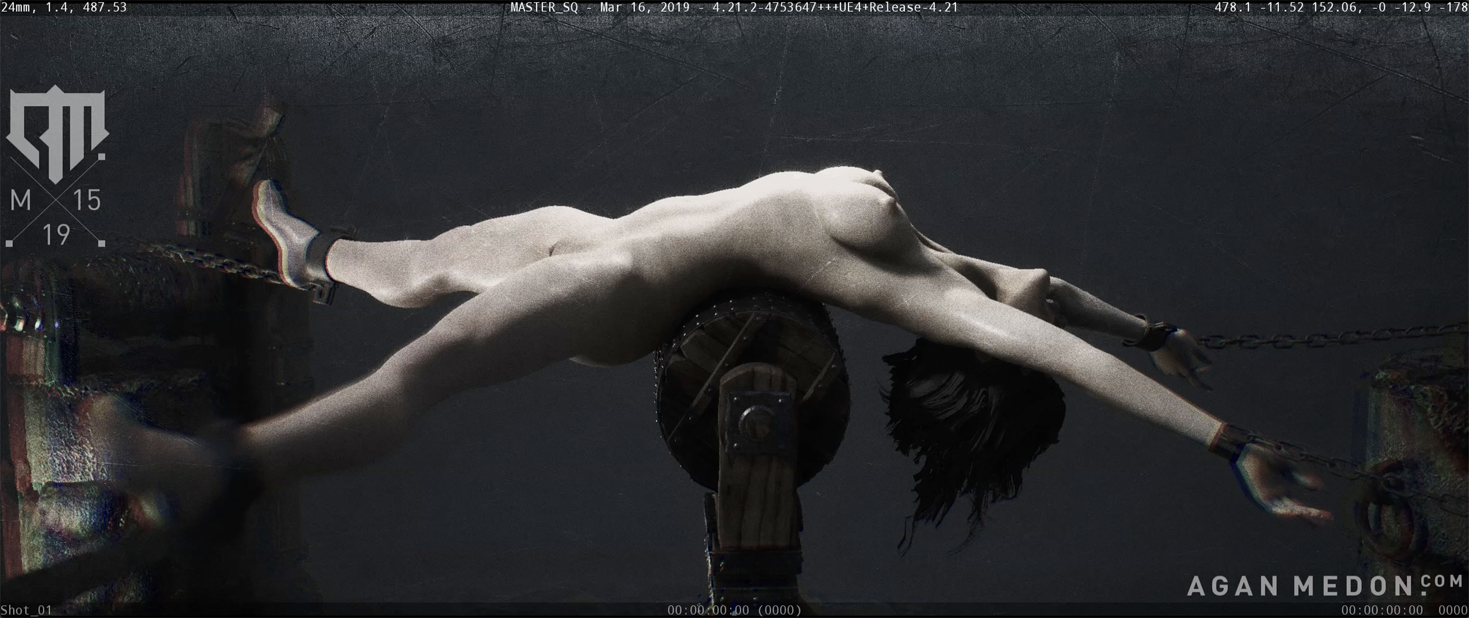 She's stretched tightly on the rack, but Alex releases the tension just enough where she's free to jerk and writhe at the whip, the hot oil and the ice torture. Just enough so that it sets those beautiful mams in motion. There's not quite as much open mouthed vocalization this time, but the physical reaction makes up for it, imo.