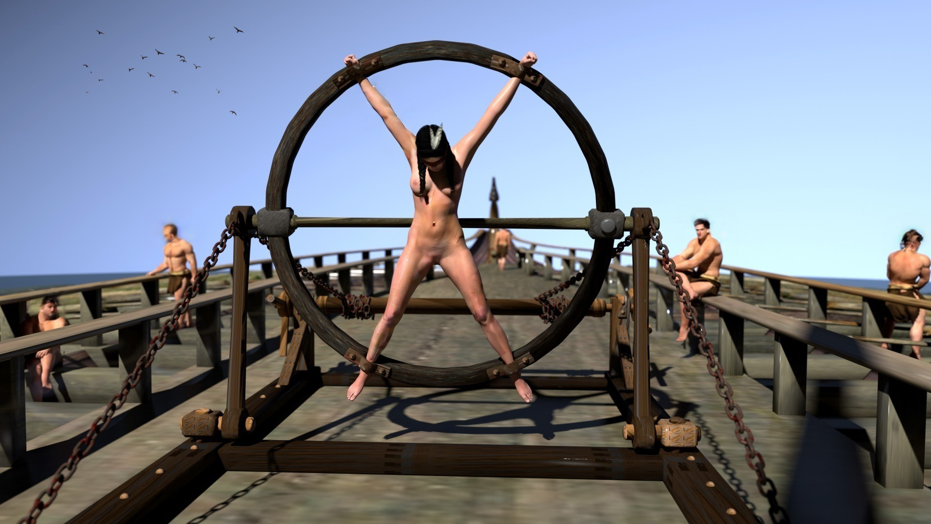 PPS I, and the torture frame you came up with deserves more viewing angles on its own. And maybe more light, I second Bluemune on that. Maybe move the brazier closer to her front, to spare those poor torturers the tiresom job of going back and forth?