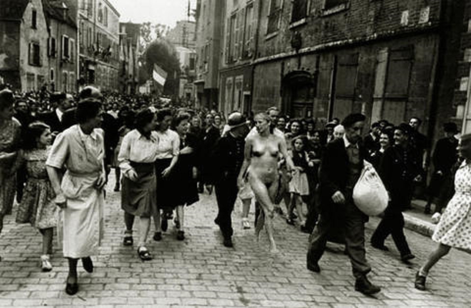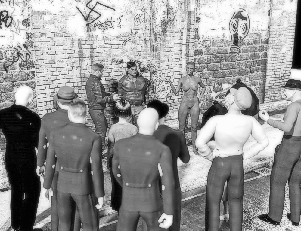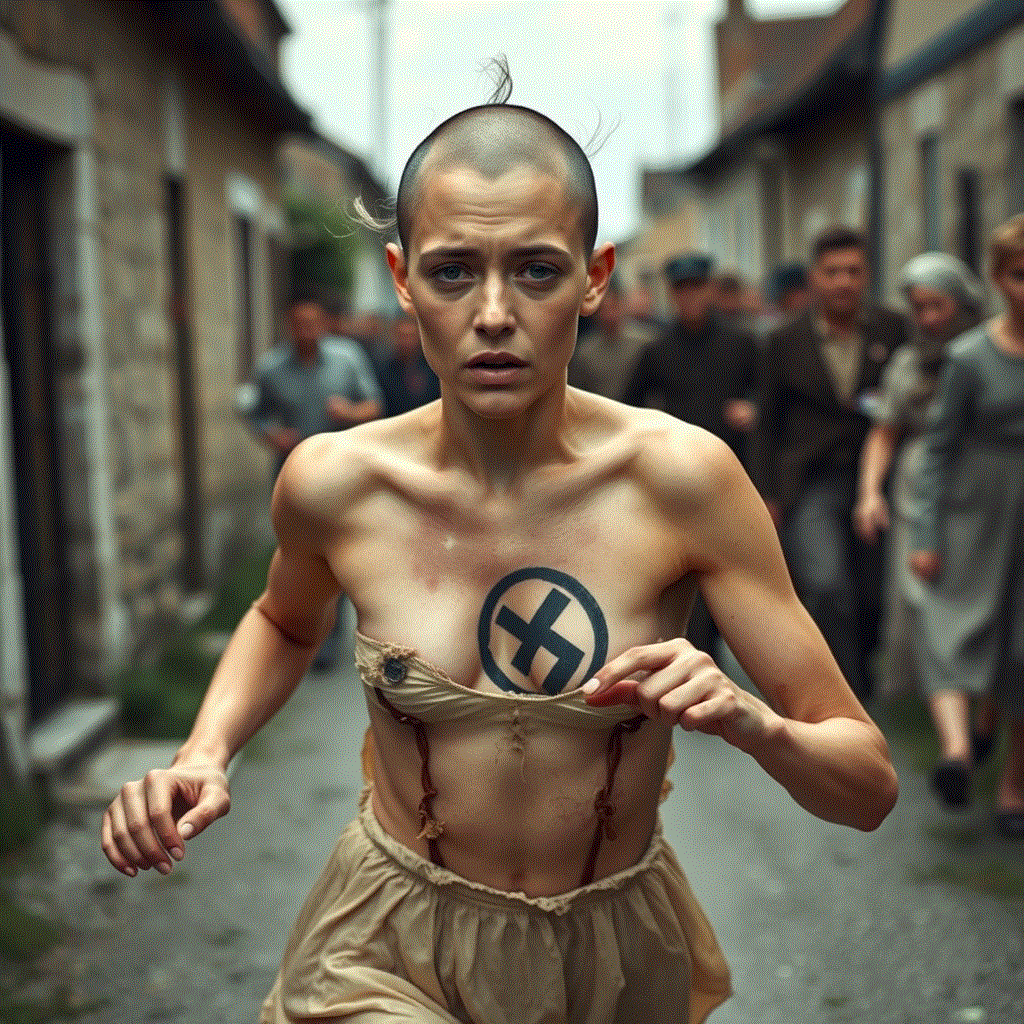 Said "Moffenzeuge" Scrawled on her (body part) or Nazi Swastika scrawled on her (Body part) to get body writing.