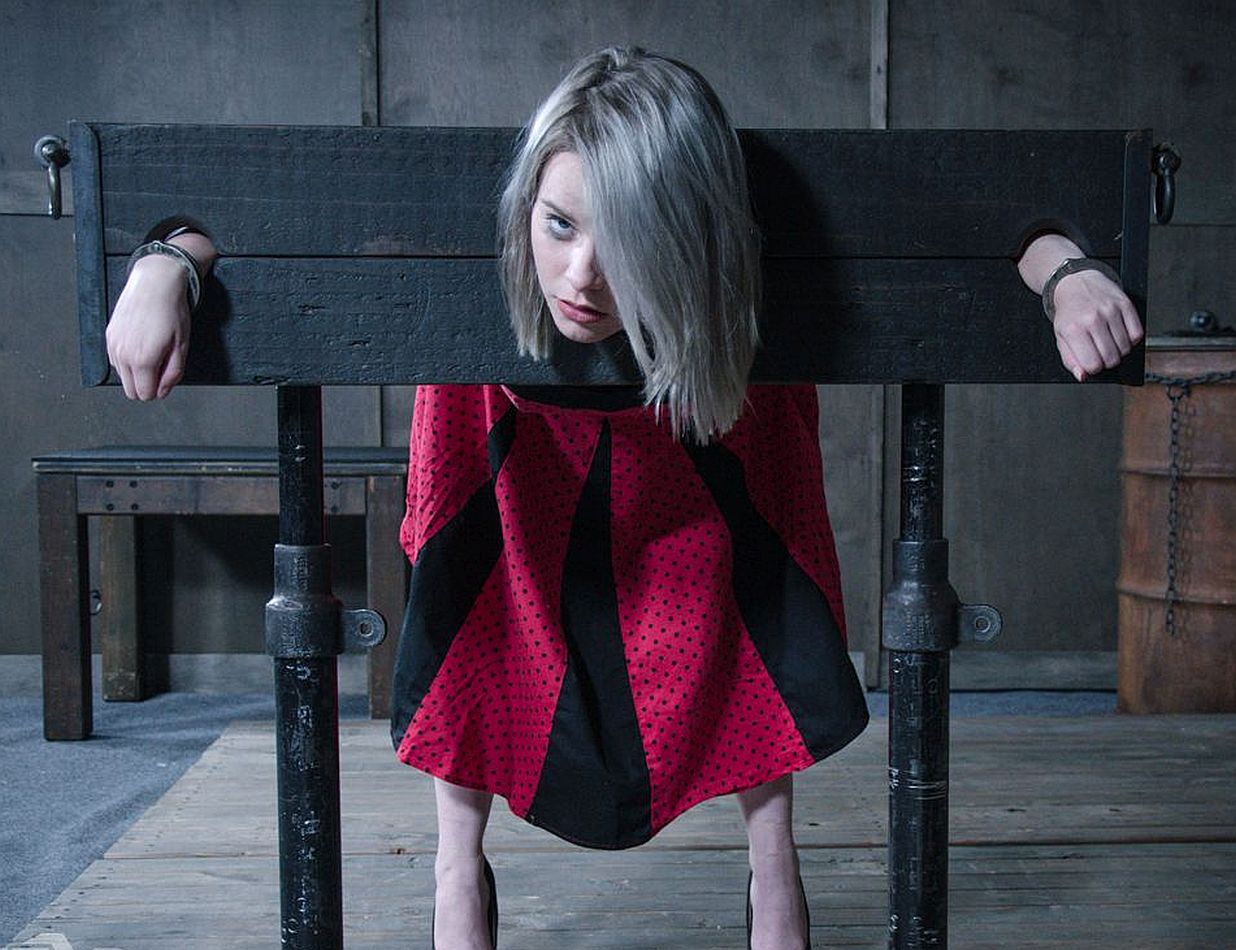A pretty cutie displayed for punishment: