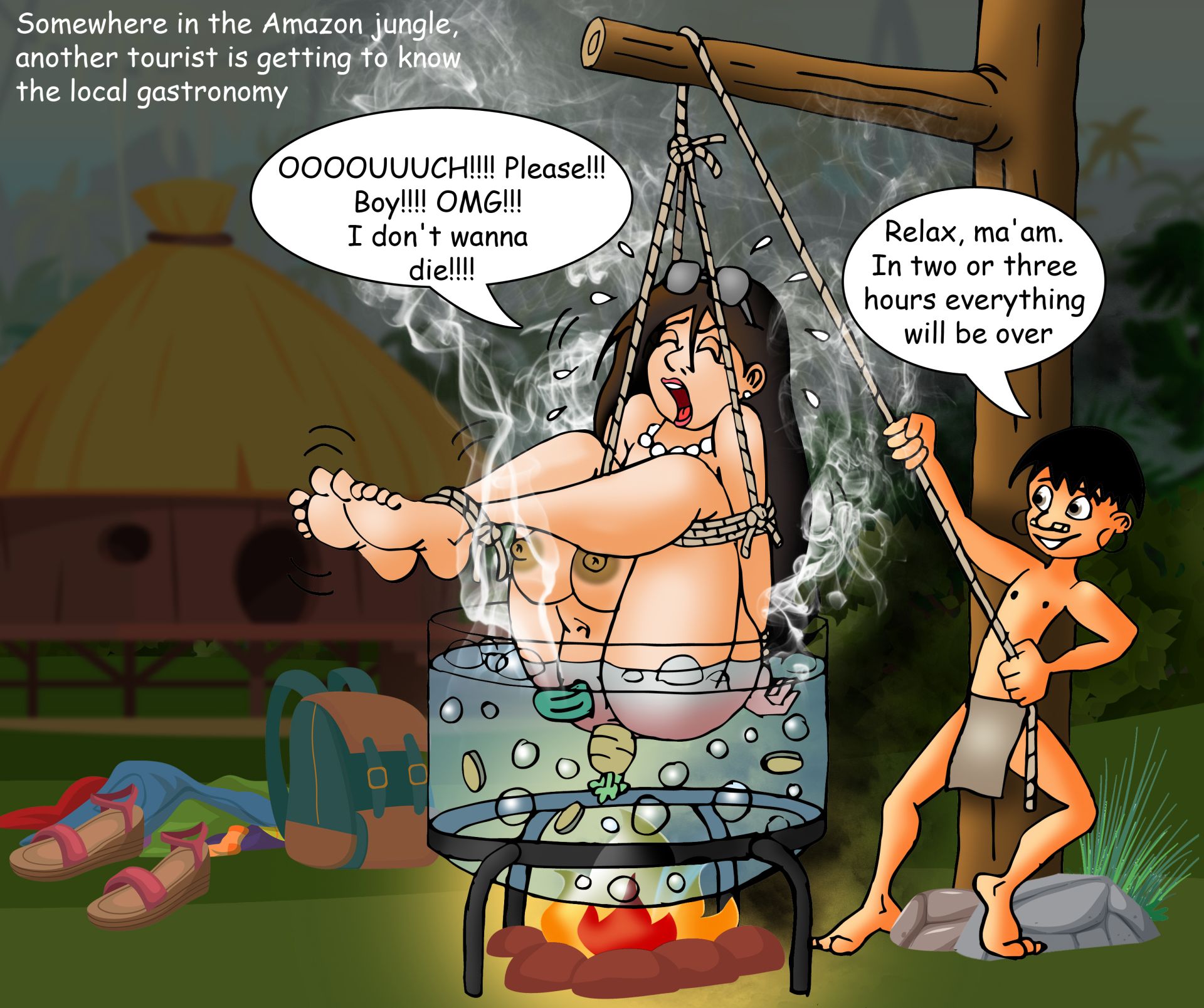 I'm not sure anyone would call these photographs real "art." I'm not an artist; I can't draw and I've never attempted AI. Everyone here who knows me is likely aware that I have a strong burning fetish, whether it be burning at the stake or roasting on a spit (which I paid for when Amy Hesketh got the actual treatment in Maleficarum, for instance). For the longest time, I had the desire to see a bound, naked woman boiled alive in a giant cauldron, like you see in some cannibal artworks or read about in my all-time favorite short story, "Baia's Fate."