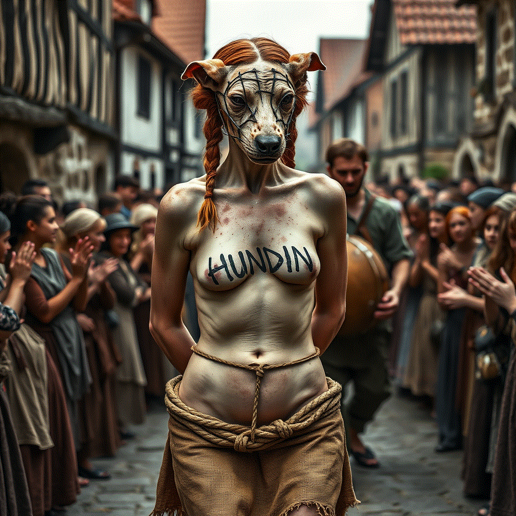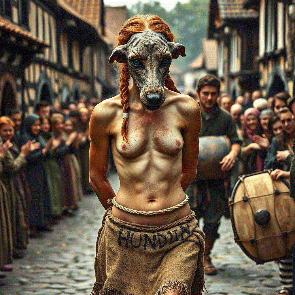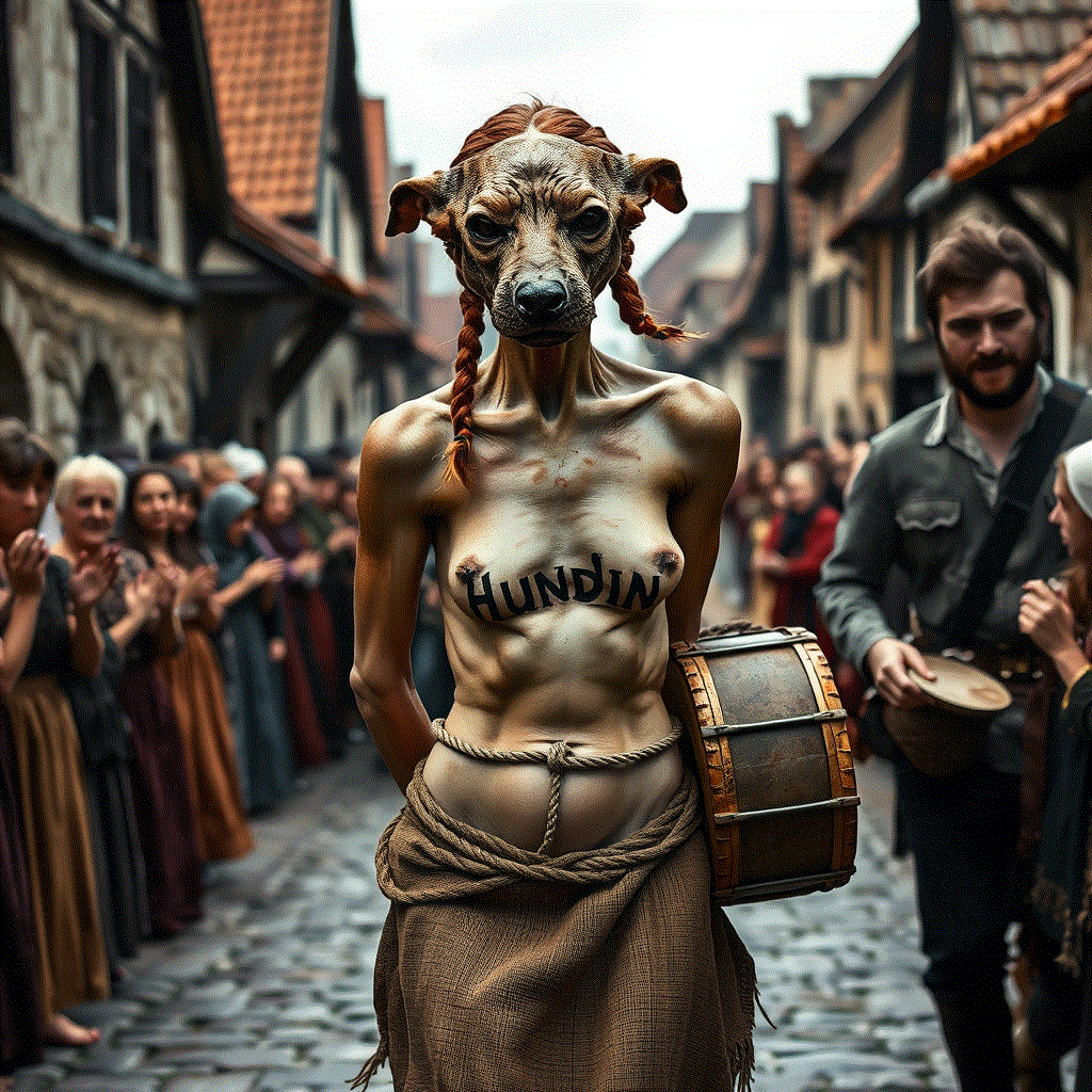 After a day that seemed to have no end she will be released. She will struggle to cut the clinging, rotting leather of the mask from her face. Then perhaps to scrub the filthy slime from her cheeks and hair. The stink of her public shame and of her day in the Schandemaske however will stay with her for the remainder of her life. To her neighbor she will forever be the Hundinmadchen.