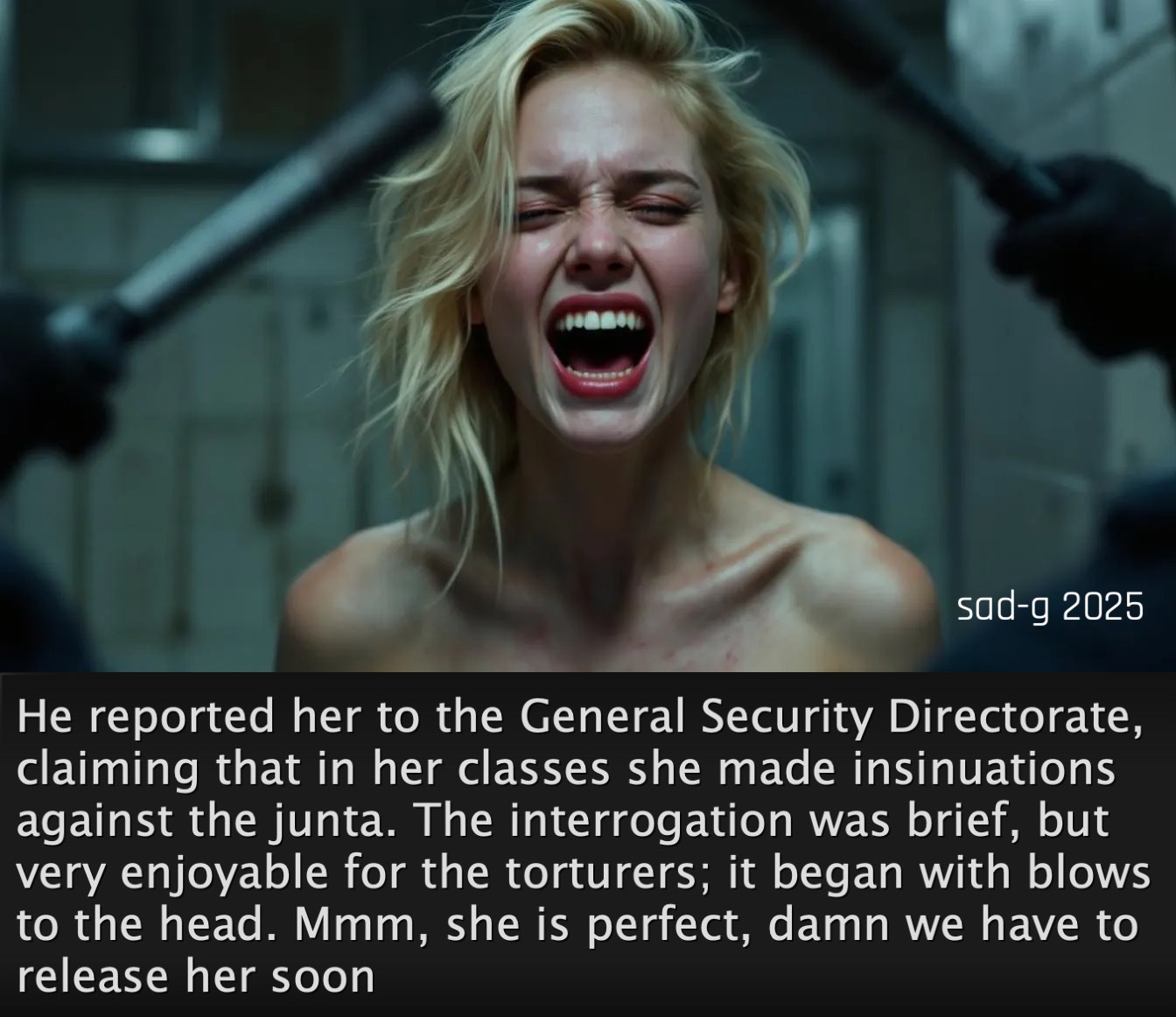 Hello my dear gimpers. After an absence of almost a year, I’m returning to the stories about the torture of girls under the San Rosario junta. I abandoned the project with Carolina; I’m starting again with small, simple, self-contained stories.
