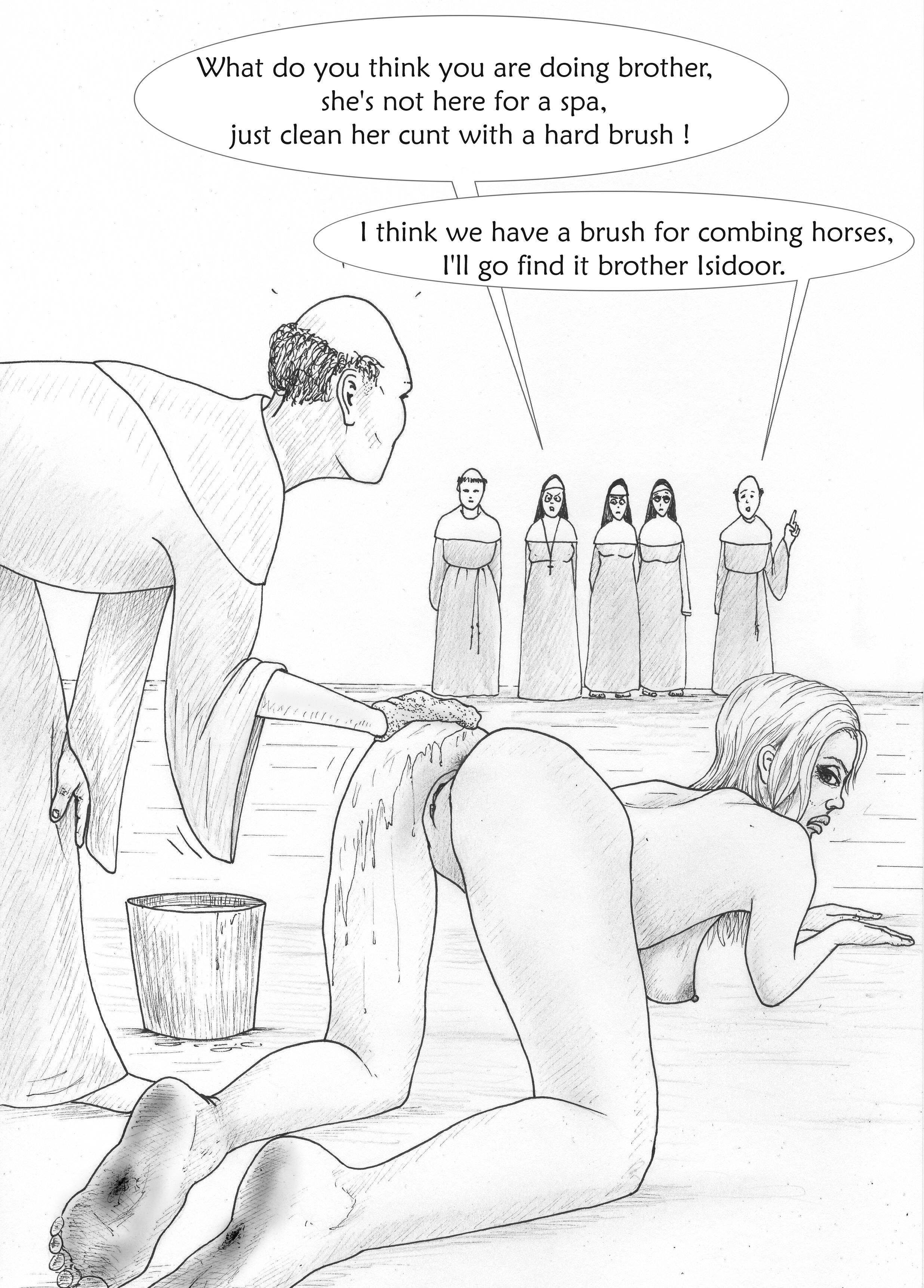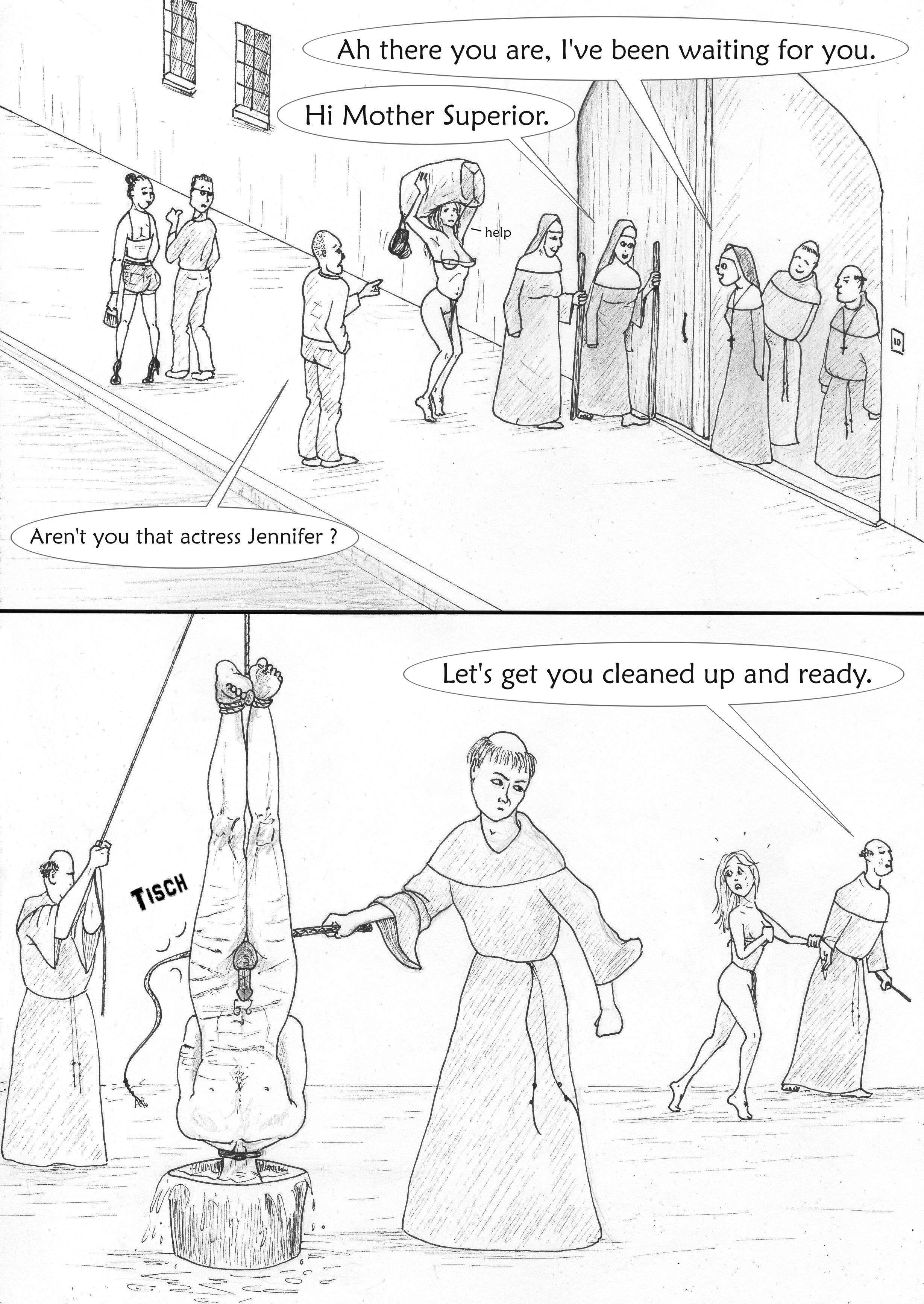 download/file.php?id=79574&mode=view, great view of her rear end and the soles of her feet. As to the monk, he is obviously trying to cope a feel, but nuns are harsh and won't allow it. Jen has more lives than a cat, which might be unfortunate for her and not a plus. I wonder why the nun chose the horse brush and not a toilet brush, that would be harsher and more humiliating.