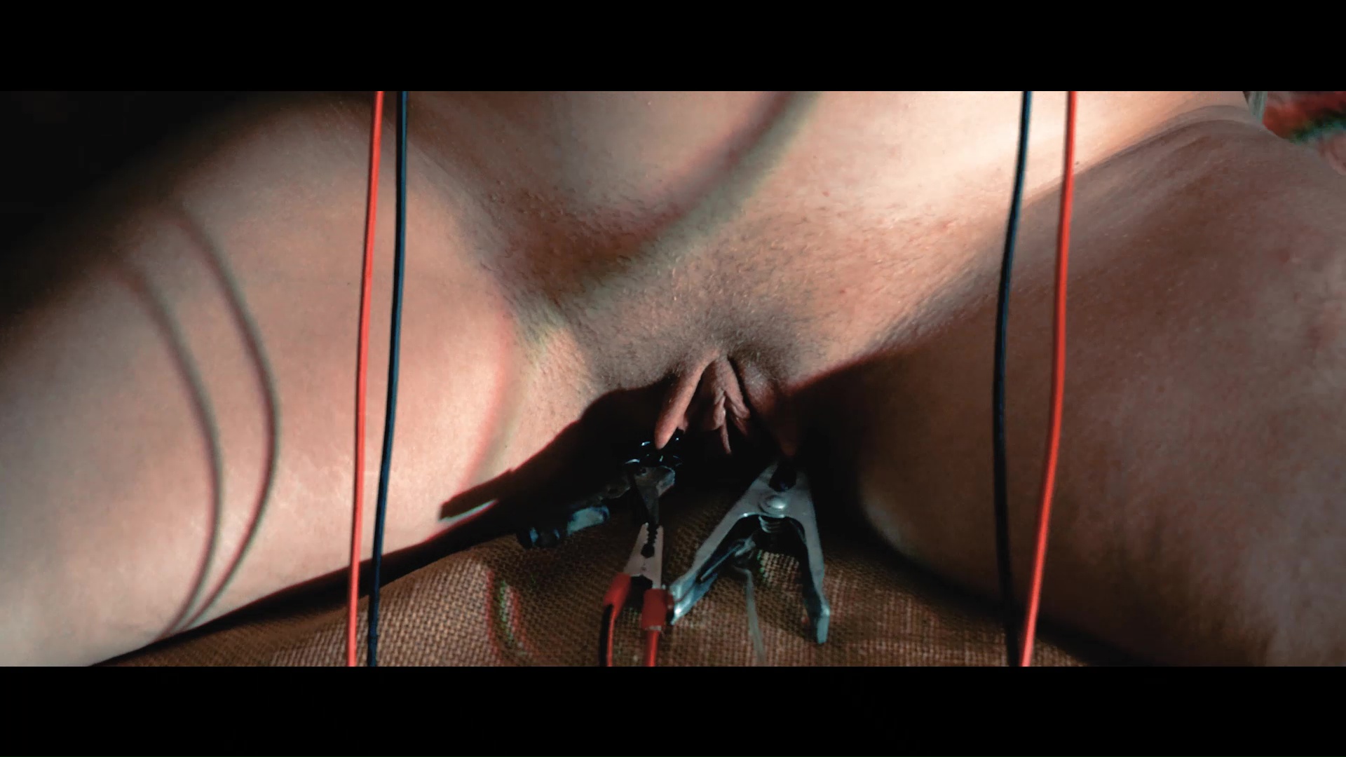 is a merciless short film where a captured soldier girl endures savage interrogation. Bi-polar Electro clamps are brutally clamped to her nipples and pussy, delivering searing shocks as the voltage is cranked higher. Her horrific, muffled screams beneath duct tape echo her raw agony and defiance, captured in graphic, unblinking detail.