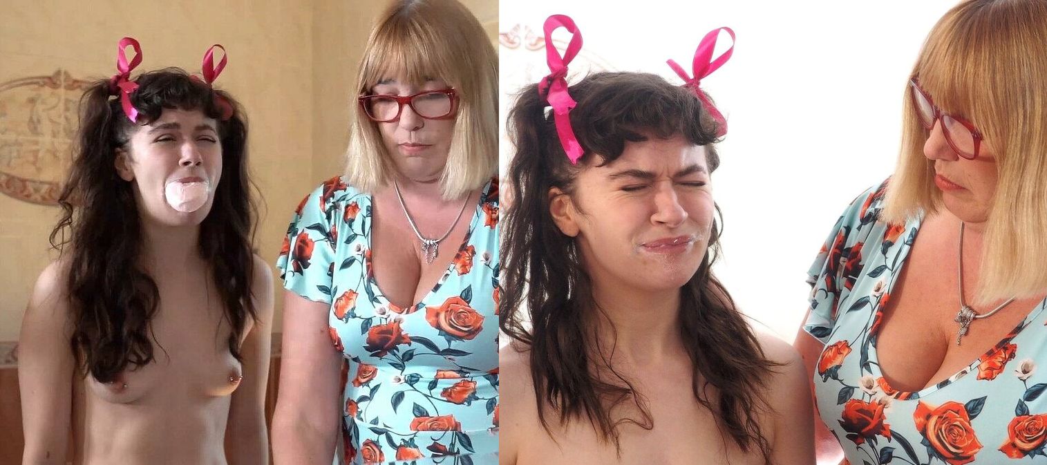 There is something hot about a girl with small tits being punished by a more mature woman with much fuller breasts.
