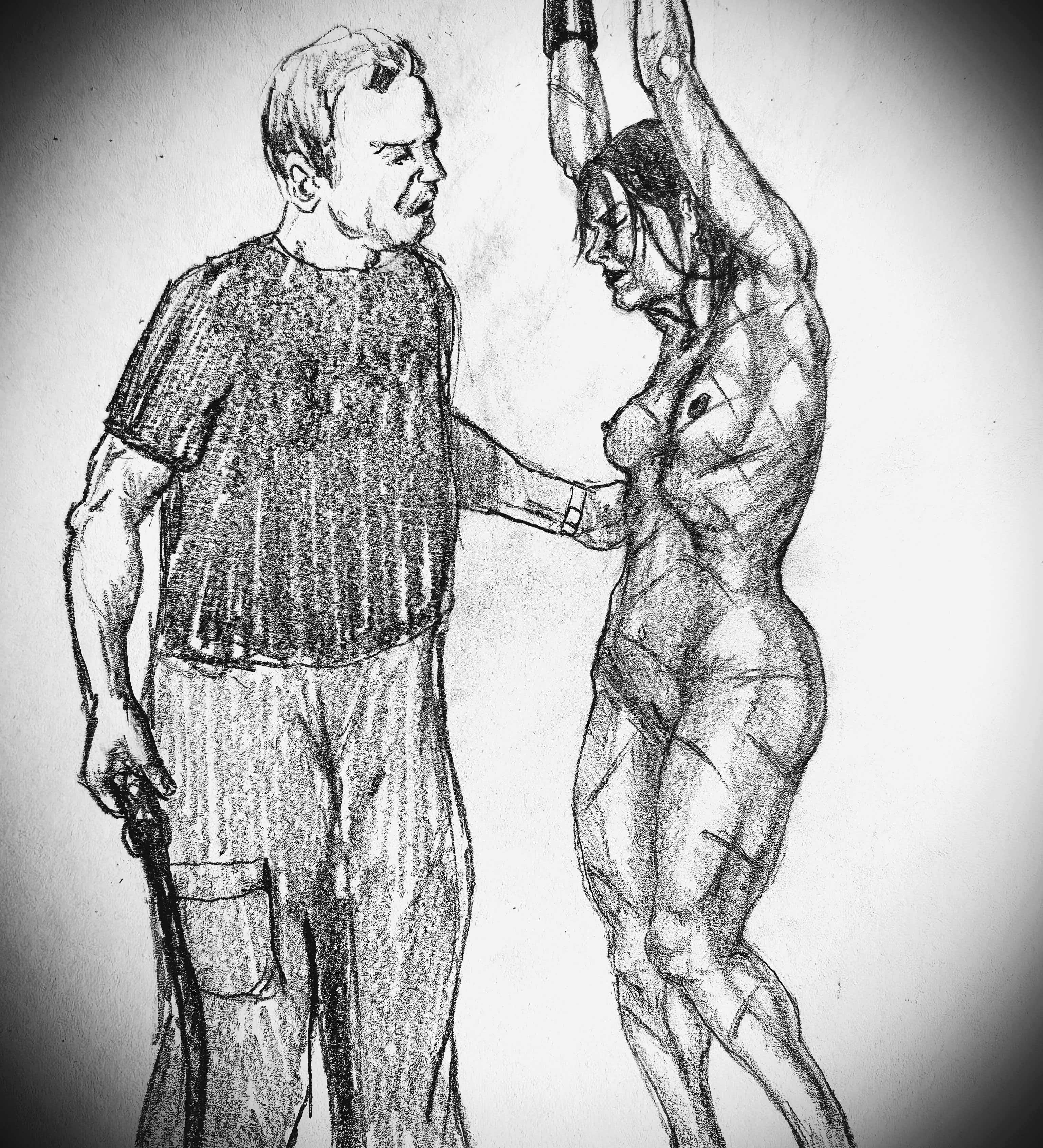 And in the middle of it all, hanging weak against the post was Agnes, Maribel’s lifelong chambermaid. The woman’s tangled hair hung loose, her shift dangled in rags from her broad, soft back. Her pale skin was already striped and pockmarked with dozens of deep and angry weals, some oozing. She trembled, breath hitching, shoulders drawn tight as though trying to disappear into herself.