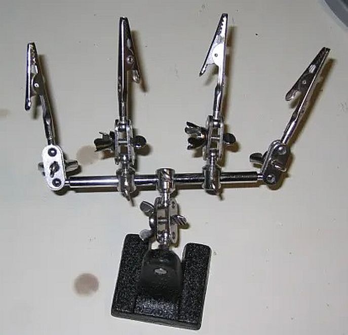 And if you want to duplicate it, this is very likely the source for the clamps: (it's called "3rd helping hand for electronic soldering")