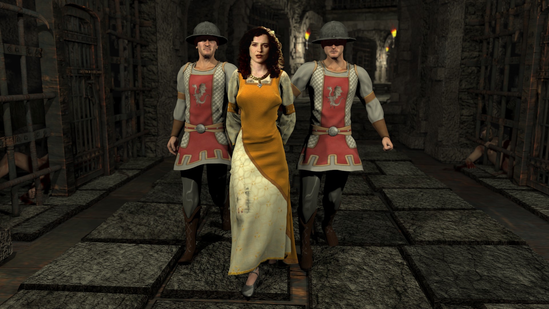JD, one of my favorite preparation scenes is the brave heroine voluntarily removing her clothing so she can be naked when she's interrogated, as you showed in your image where Marion is removing her dress before she's bound on the Rack. Of course, I like to show the heroine having her clothing forcibly stripped also. I prefer my heroines strong and brave despite the agony she is enduring. I don't go in for humiliation like many artists do, so a brave heroine voluntarily disrobing tickles my fancy.doe.1971 wrote: ↑Sat Sep 17, 2022 3:45 pmI know you didn't ask me, but just happened do a small arc of an inquisition rack scene. Maybe you like it.