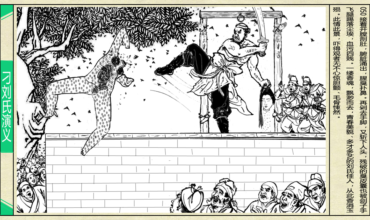 围观人群, 欢声鼓噪, 指手画脚, 高谈阔论, 兴趣盎然地回忆着行刑之惨烈!