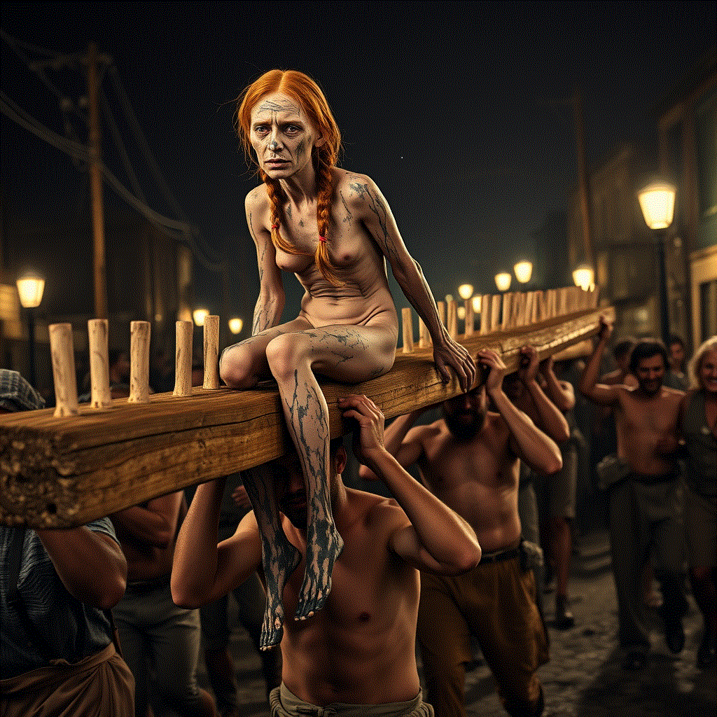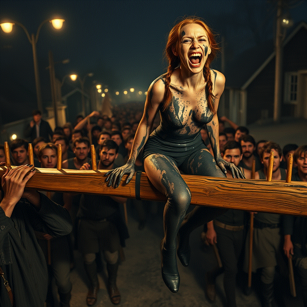 In Scotland immoral women would be forced to "Ride the Stang". The stang was a rough tree trunk. The woman would be stripped naked and set astride this pole. A mob would then carry her throughout the village. They would lift her up high, then drop and catch the pole repeatedly. This jostling ride could inflict severe damage on their victim. Eventually they would take her out of the village and toss her off her mount, often into a filthy pond. She would be warned to never come back.