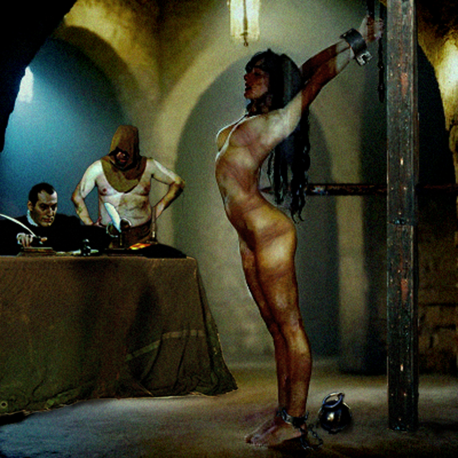 Yes! Very sexy, but I was thinking the very same thing, maybe another torturer menacing her back with a hot poker, or somesuch...with her ankles chained to the floor.
