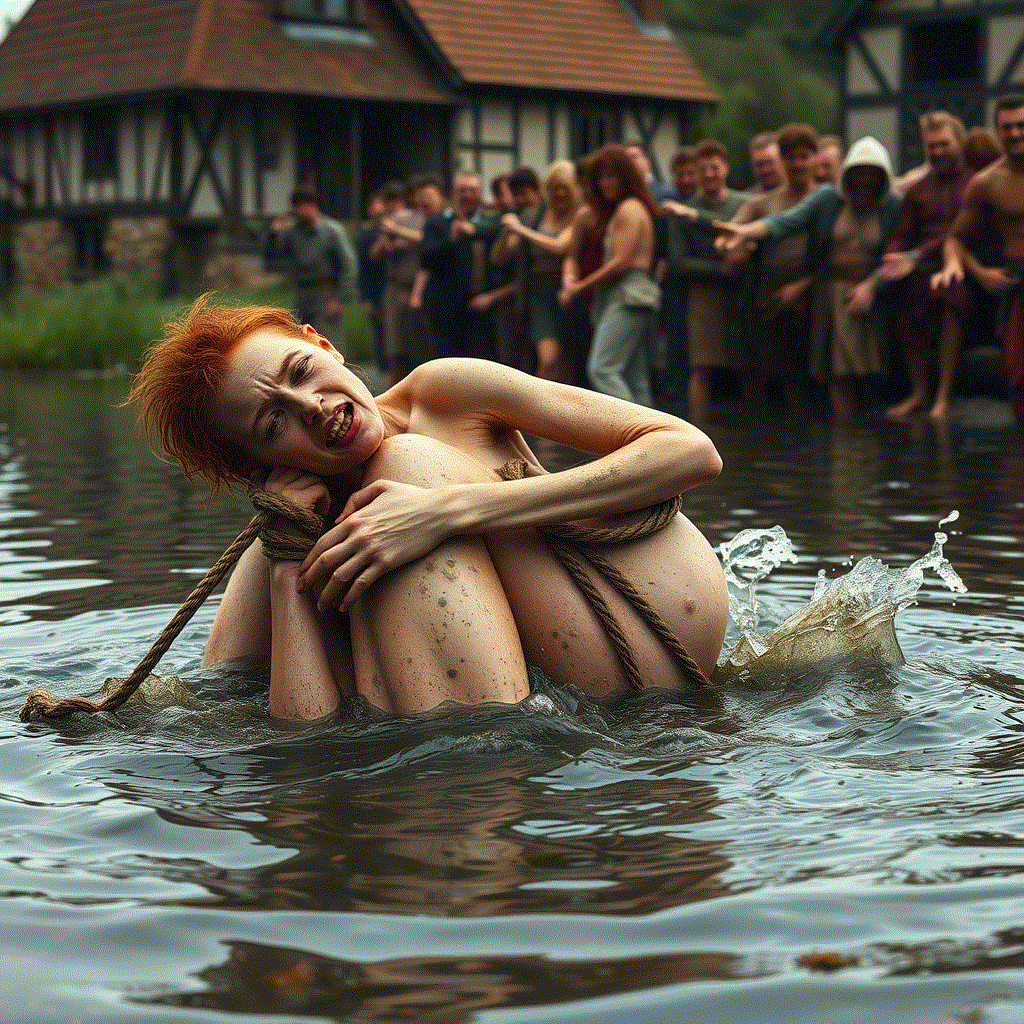 cclaun wrote: ↑Mon Feb 03, 2025 3:48 pm The mob has dragged her to the shore of the pond. They strip her naked and search her body for magic charms. Shaving her to make certain that nothing is hidden in her hair. She is tightly bound and cast into the water. They watch her struggles from the shore.