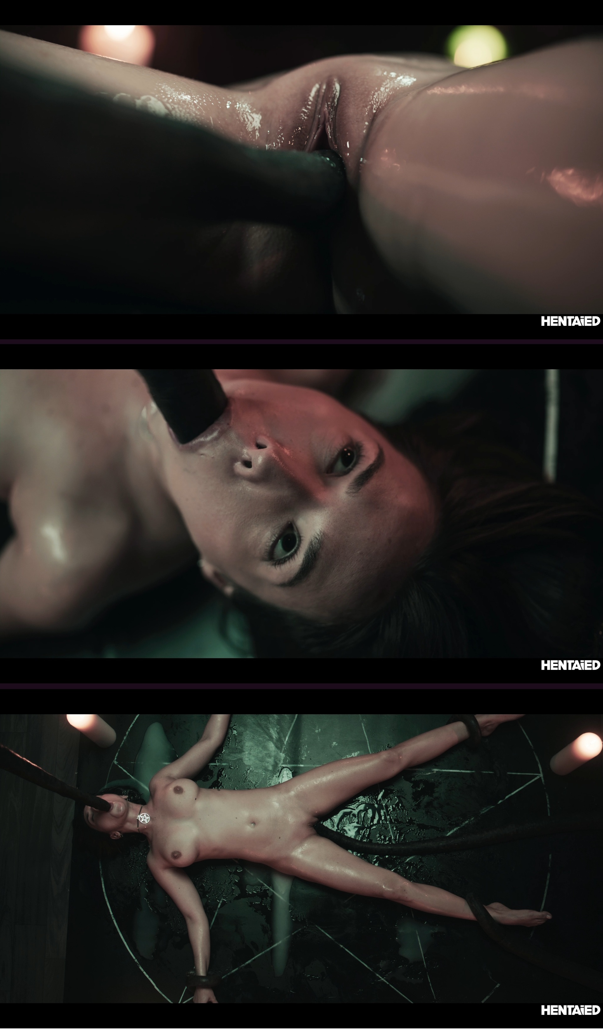 As she’s standing and fighting for breath, Eve’s pussy gets quickly impaled by one of the black devilish tentacles. Her pussy is stuffed with so much tentacle cum that there is nothing poor Eve can do other than lay on the floor. Once she’s woken up, the encounter with the tentacles continues, and there’s nothing she can do about it.