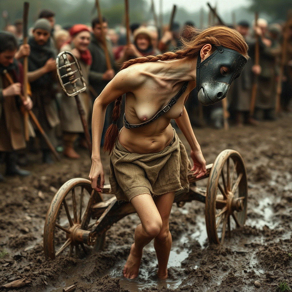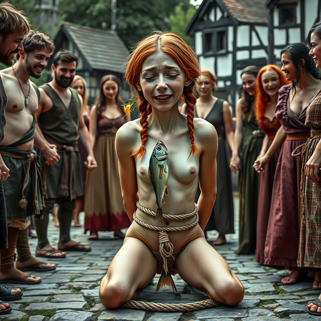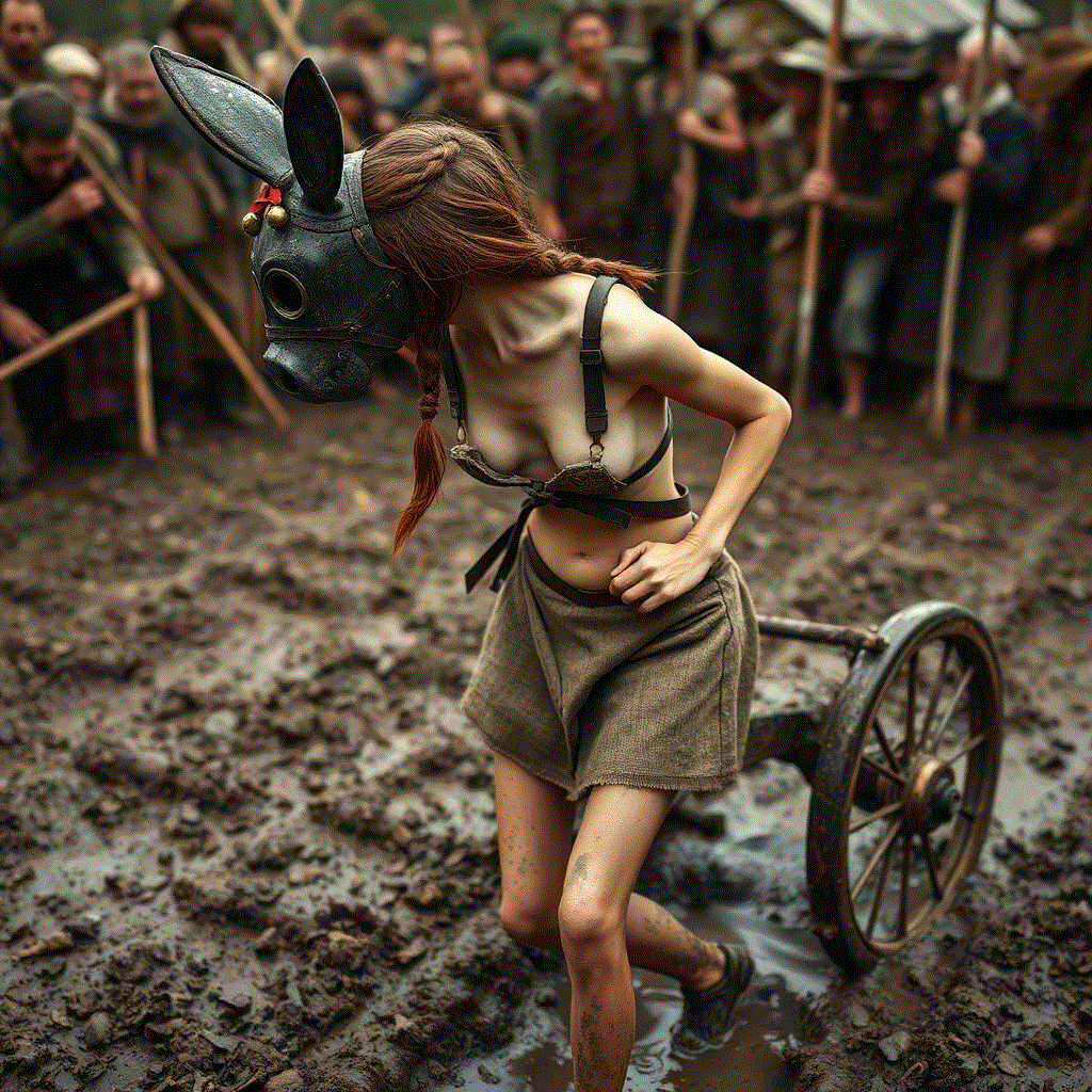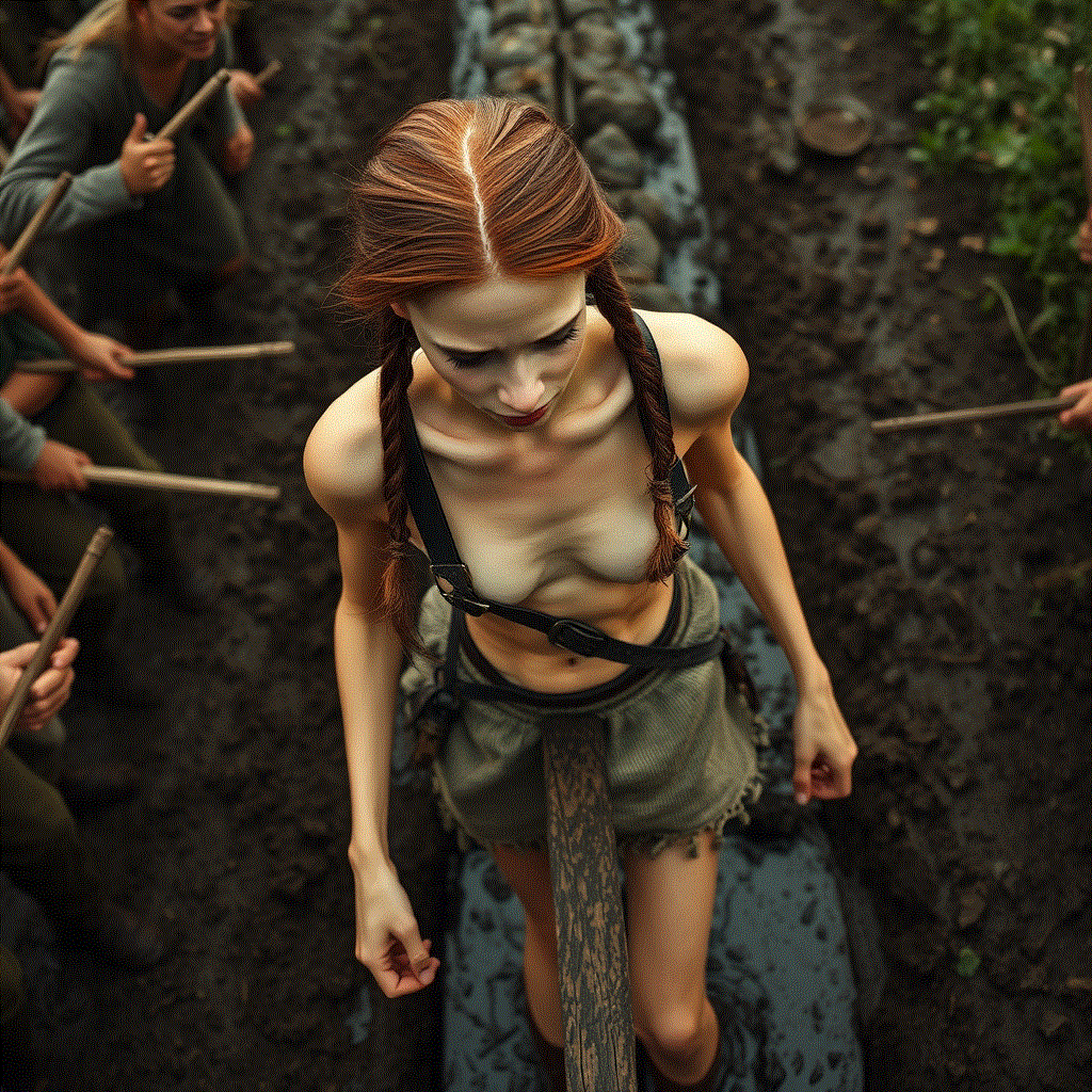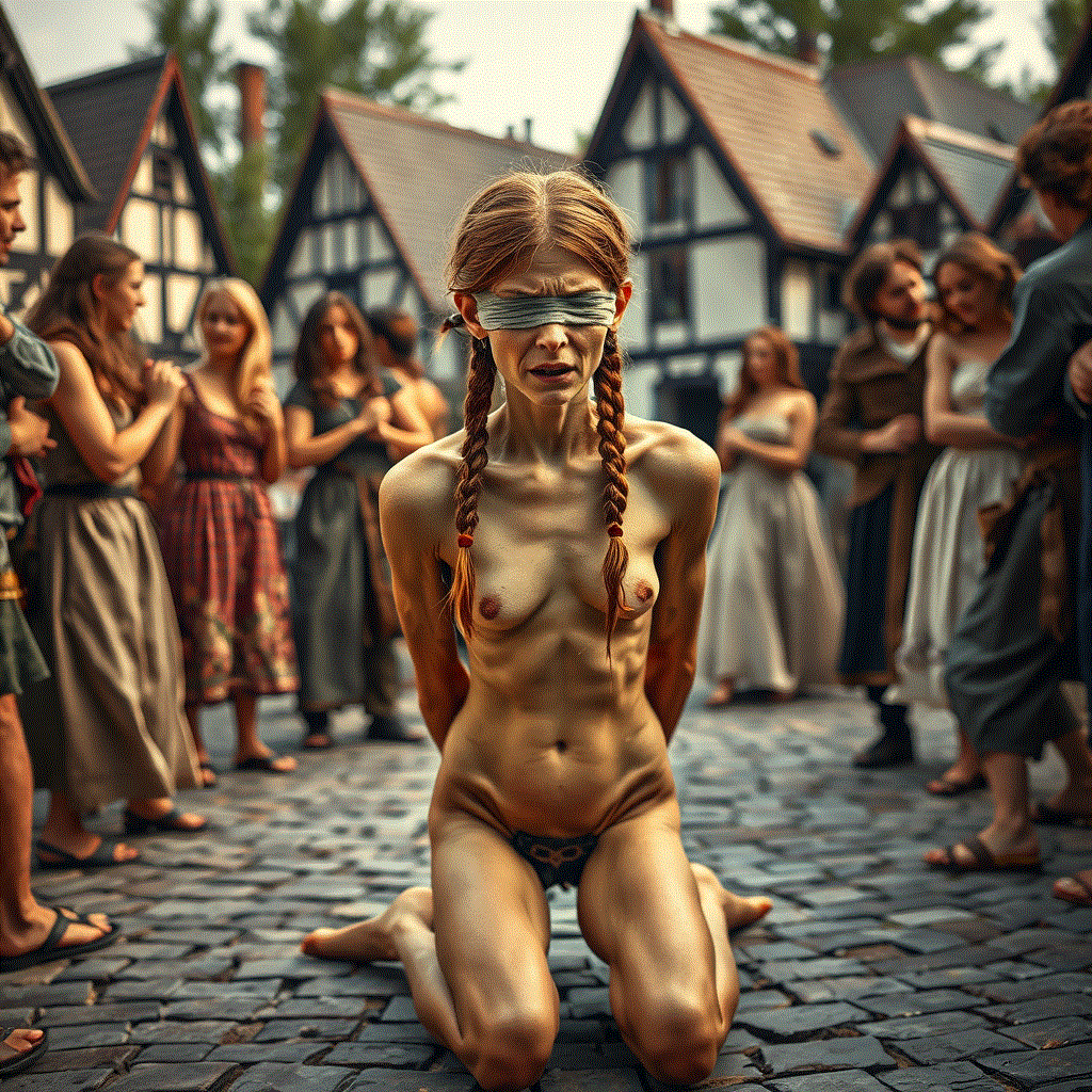 The young women of the village prepare for the May dance. Dressed in their finest they kneel in the town square. The young men begin a circle dance around the gathered young women. One by one the men enter the circle and chose a woman to join them in the dance, giving them a garland of flowers. The circle of dancing couples grows and the remaining group of women shrinks. Finally, there remains one unchosen woman, Das übrig gebliebene Mädchen. The ring of dancers closes in on her and tears the clothing from her body. For her there are no flowers. Rather she is garlanded and pelted with rotting fish. The circling dancers wrap ropes around her cringing body, pinning her in place as the joyous village circles around her.
