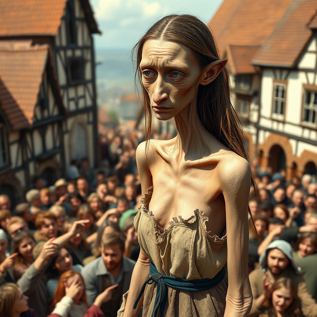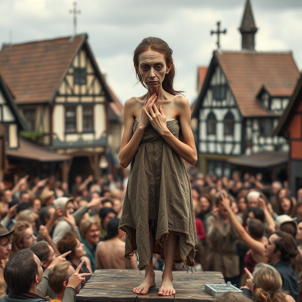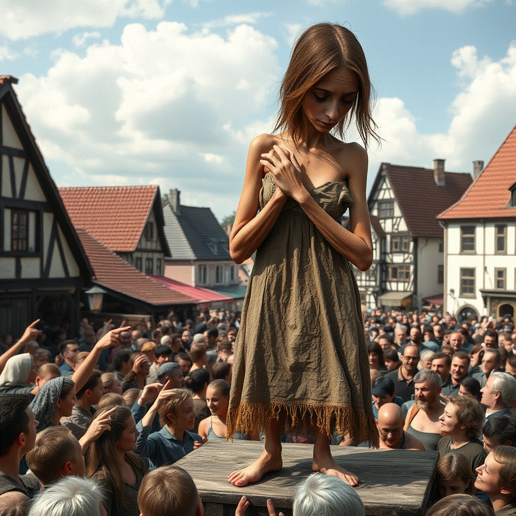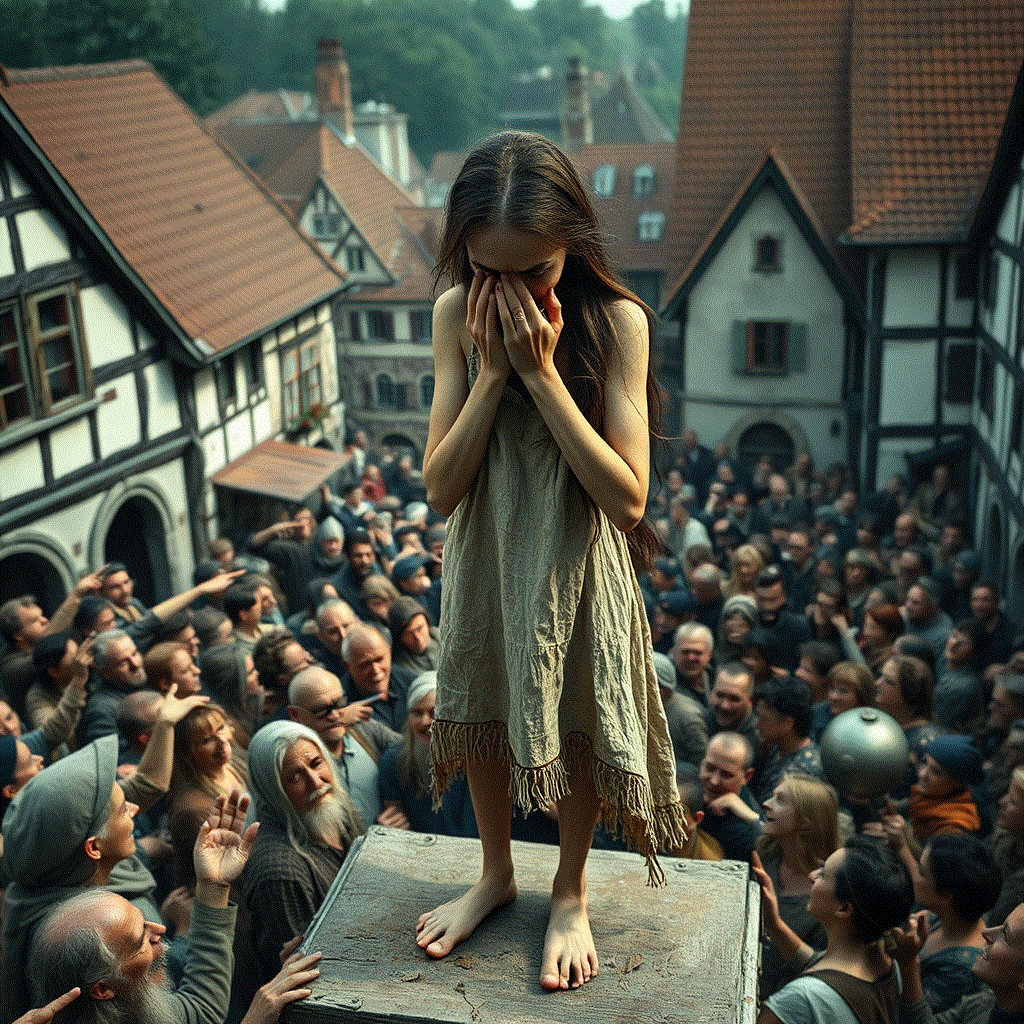 They are brought in a wagon to the middle of the town and placed high on a platform in the middle of the throng. Here they are offered as Schnäppchen alte Jungfern or Bargain Old Maids, to any man who will take them for a penny. With no takers the reverse auction begins. A bounty is offered to any man who will take them. They only need to step up on the platform and kiss the unchosen one on the lips in front of the entire town. The rejected woman stands there cringing as the bounty goes higher and higher and the jeers of the entire village reach a crescendo pitch.
