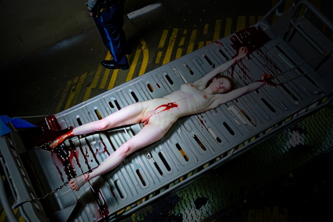 I put her in the prison shower so that the officer could clean the blood from the punches she received on her pretty face as a welcome, ensuring she's intact for the next round.