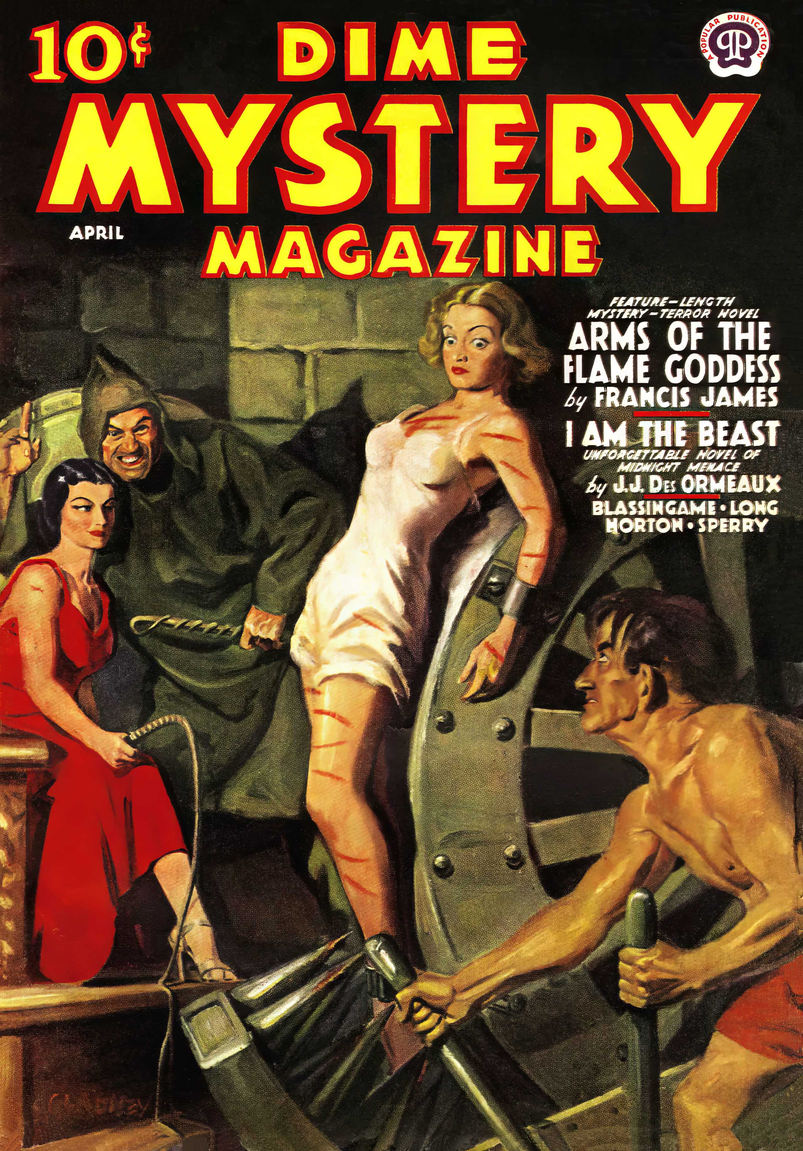 It looks like you've got me figured out. Except . . .wulf wrote: ↑Wed Jan 31, 2024 3:06 pmOh I love where this is going. Couldn't help but notice the pan of coals under the wheel.bleumune wrote: ↑Wed Jan 31, 2024 11:44 am Here's another Weird Menace magazine, Dime Mystery April 1938. This one required some serious replanning of the Wheel device, since the threatened heroine, who looks like a high society-type, can't possible survive more than a minute or two with the huge spike that are shown once the Wheel starts turning. There just isn't room! And, of course, any self-respecting demon and demoness would NEVER let their captured heroine go to her doom in her shift! If I had been alive in 1938, I would have been REALLY frustrated at what the artist didn't show.
