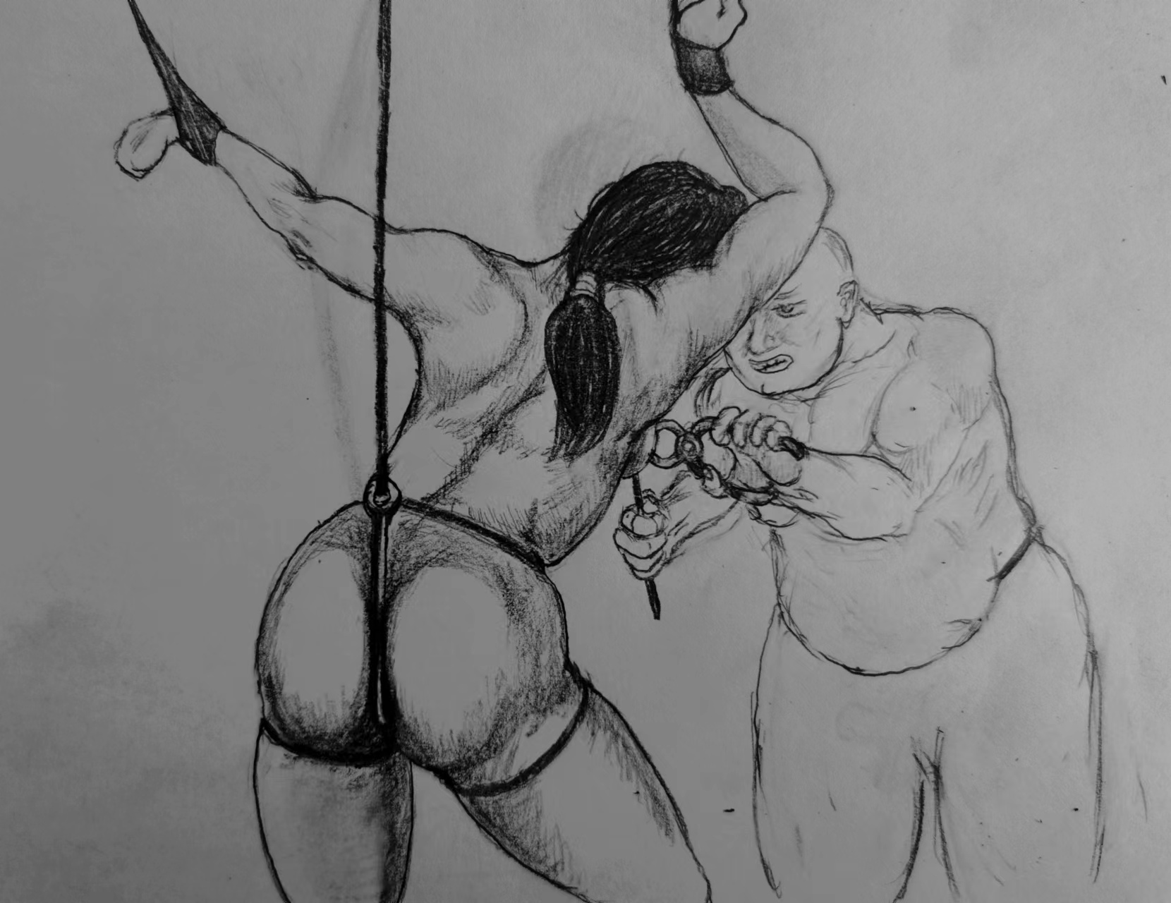 I love this one!! Great job on the twisted position, and using my favorite tortures on her.