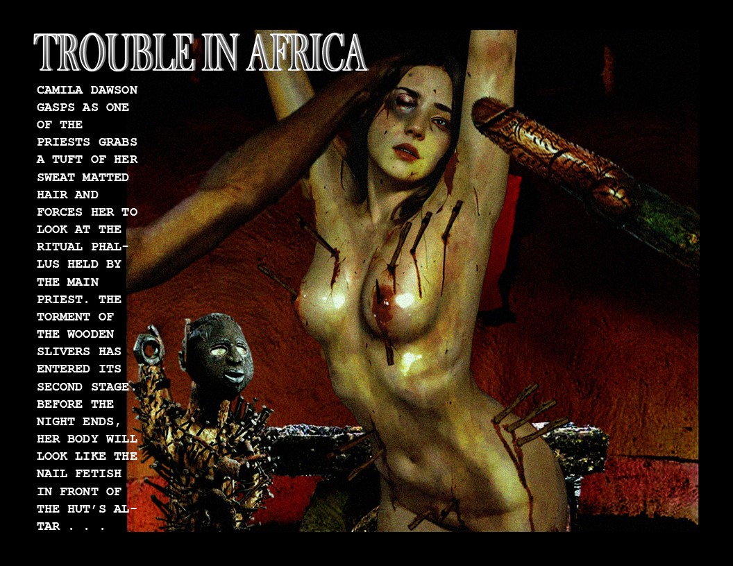 In the old warehouse, they stripped her naked and pulled her up into a straining spreadeagle in front of a crowd of enthusiastic gang members.