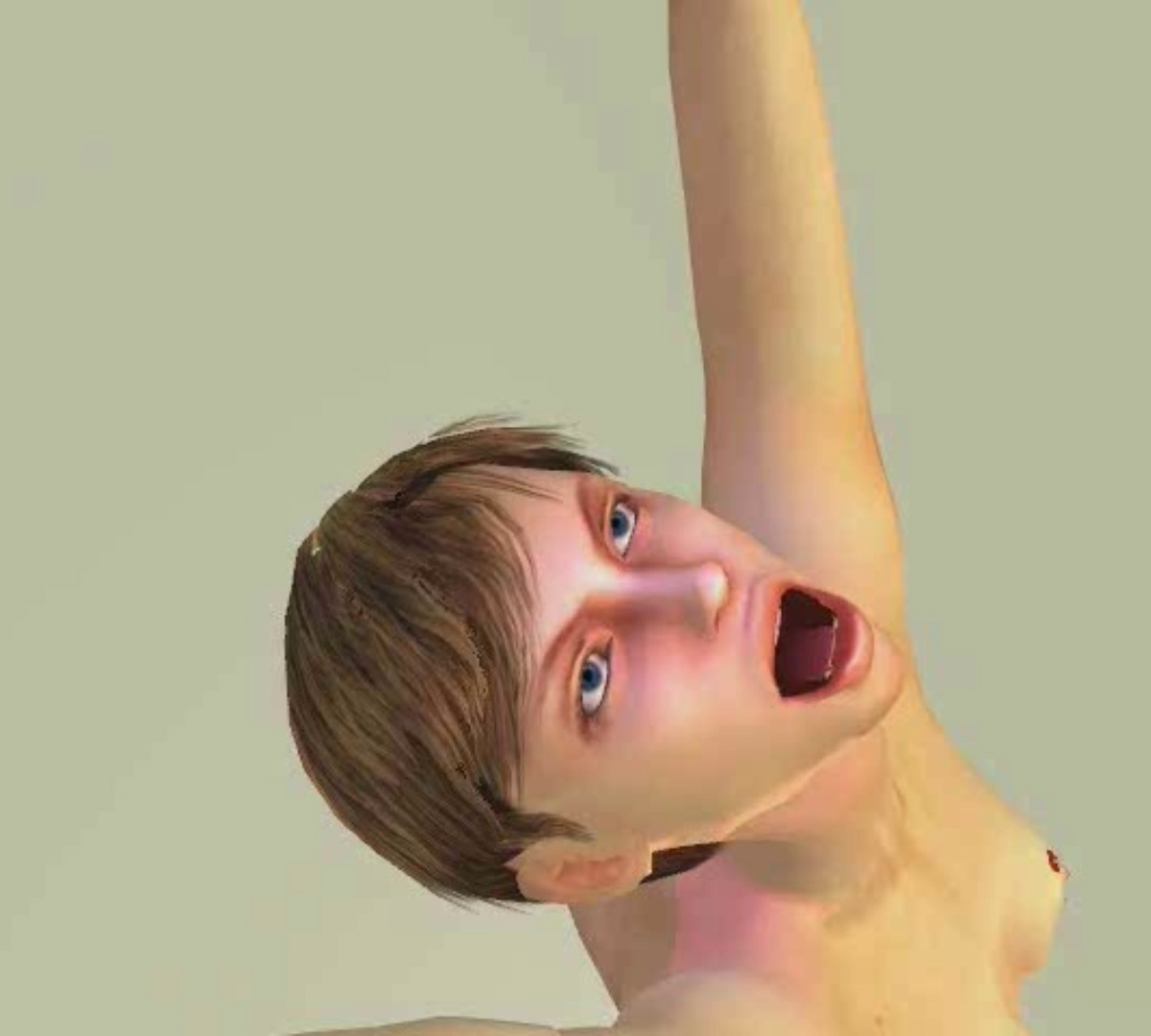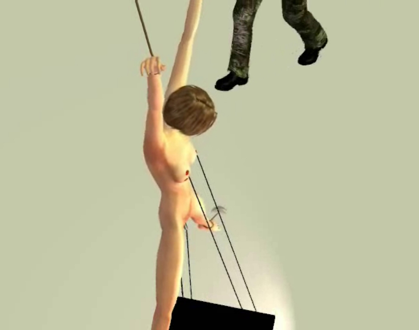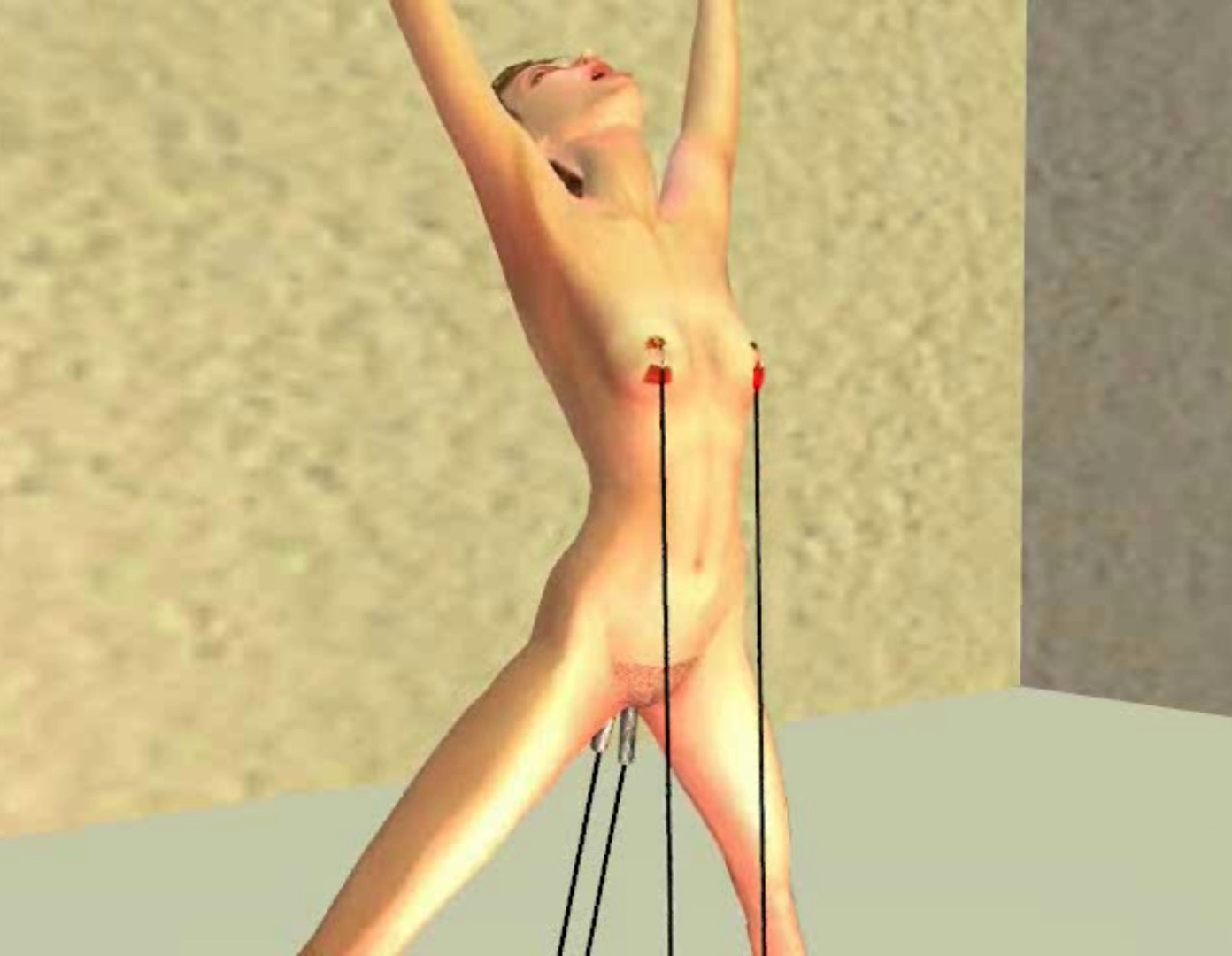 Full power, full of agony. Her back is taut and fixed her arms and legs burning her breasts her anus and vagina are speared with red hot knifing pains.