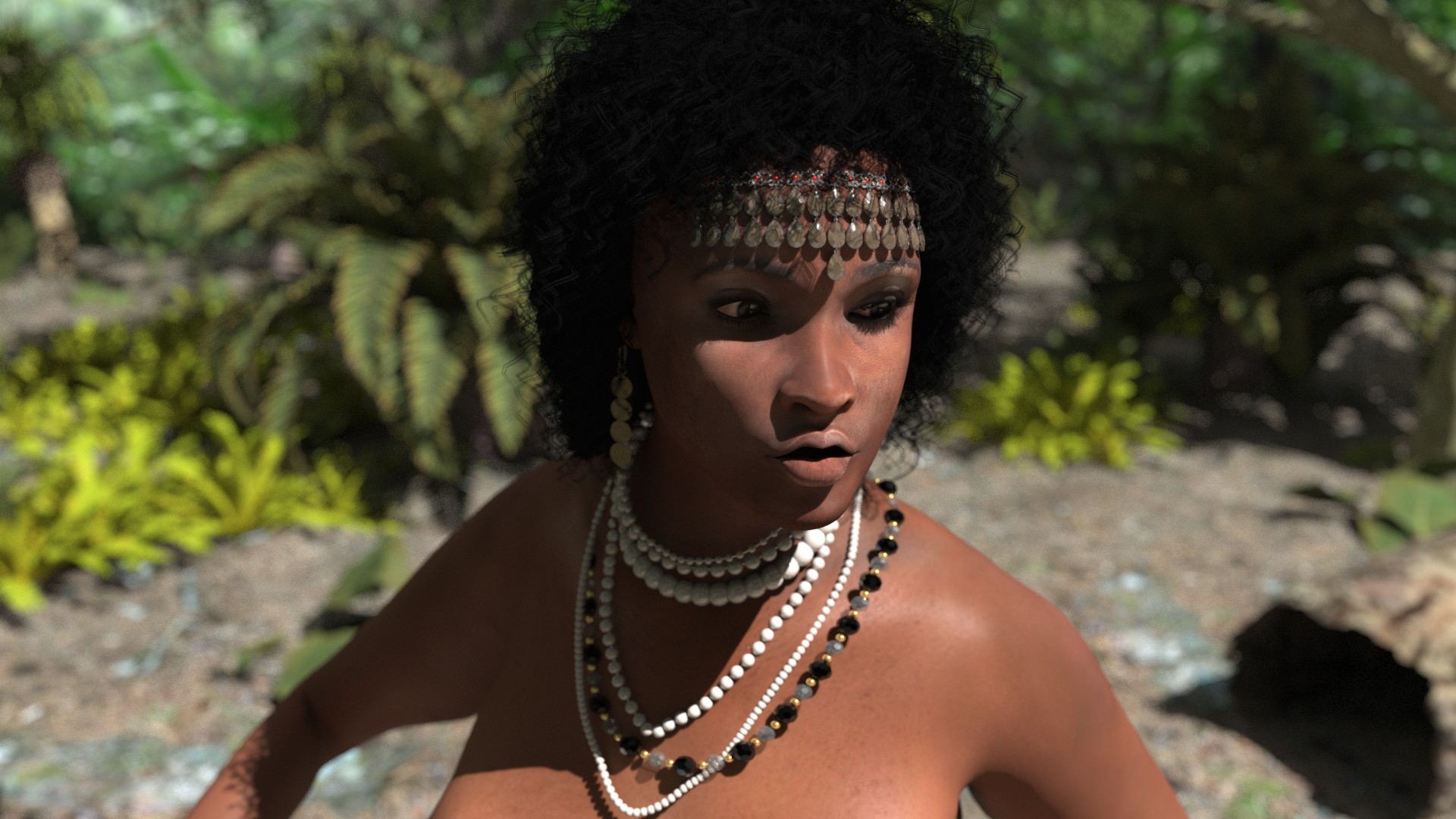 She's careful to discern the wind noises from light footed Pygmies, her tribe traditional enemies in this part of the jungle. Desert dwellers as they are, they don't shy from raiding the wetlands in search of slaves for the Arab traders.