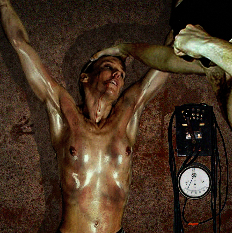 After being held in isolation for three days with very little water or food, she was stripped and transfered to the "Hot Room". Suspended spread-eagle, she endured the torments of hell for twenty four hours. Exhausted and dehydrated, she was submitted to the first round of "ablandando". . .
