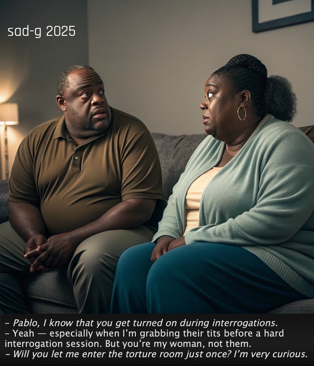 Someone messaged me privately, a bit bothered, asking why the torturers have lately been Black and the girls very pale. So I feel obliged to clarify this here in the thread as well, since there’s no political correctness in the dark things we’re doing here. It’s simply that this color contrast dominates in my personal fantasies — obviously it has nothing to do with racism. In the fictional Central American island of San Rosario, there is racial diversity. I try to create images that primarily satisfy my own imagination; I just hope some of them appeal to others as well.