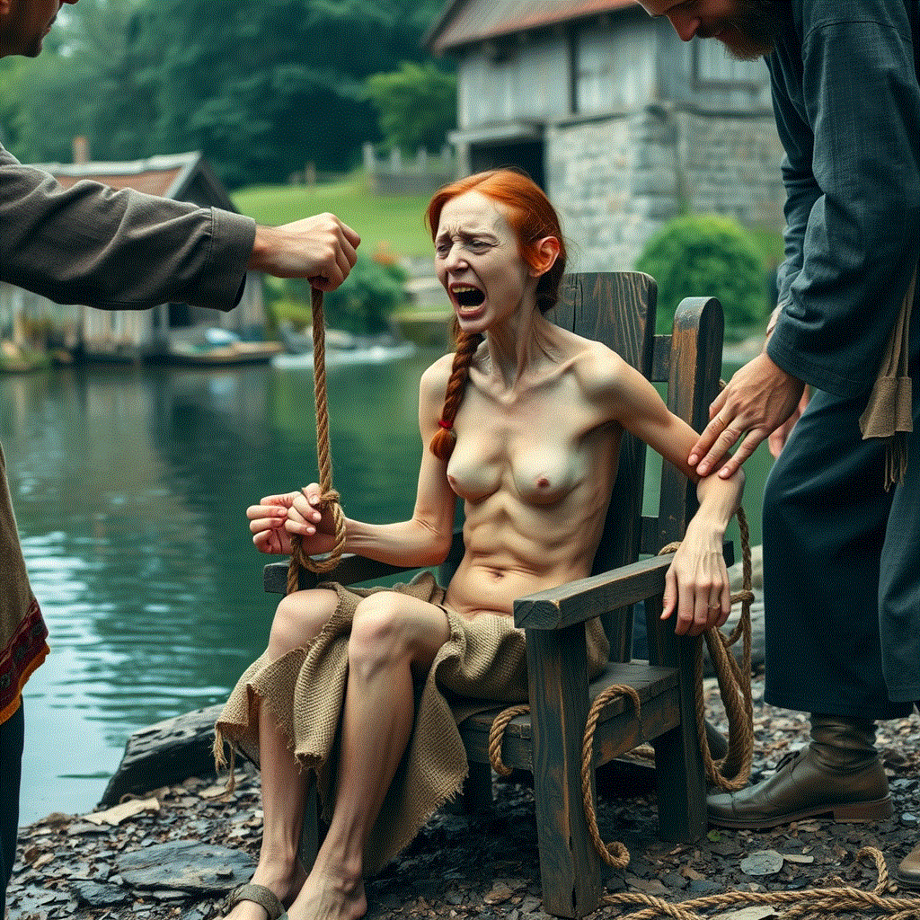 They will make her fast to stool. Iron bands, tight about her chest and waist. Her hands and feet strapped down.