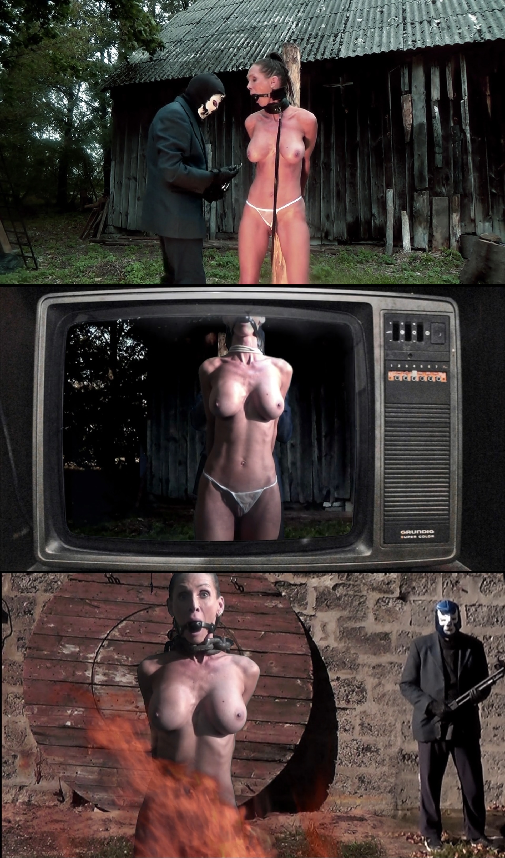 "Burn Bitch Burn!" chant the crowd as she finally succumbs to the vortex of heat!