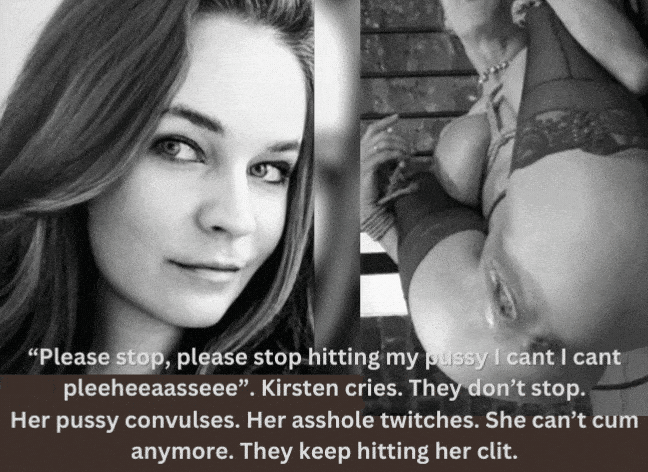 Als ik mijn ogen weer open doe hoor ik mezelf krijsen, terwijl ze mijn tepels verbranden. En ik begin te huilen als een kleuter. Ze sleuren mijn dochtertje naar binnen. Ik heb gefaald. Natuurlijk heb ik gefaald. Mijn naam is Kirstenskutje. Als je dit bericht je bereikt: het is te laat voor mij, ik ben inmiddels al een broedkoe, maar alsjeblief, alsjeblieft, koop mijn dochter! Ze zal een goed klein meisje voor je zijn, haar mond zacht, haar spleetje strak! Ze is immers het kleine meisje van fuckpig Kirsje![attachment=0]Kirsje Applethorn wordt gemarteld tot haar geest breekt. De mannen komen in haar mond.