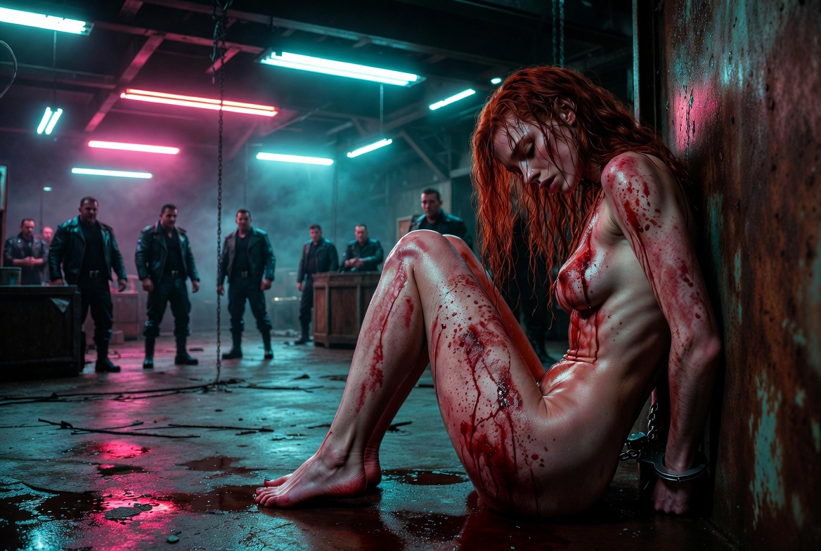 Silver links wrapped her wrists, ankles, and torso, burning deeper with every futile struggle. Her voluptuous form arched in silent agony, yet her beautiful face remained calm, lips closed, eyes terrifyingly serene.
