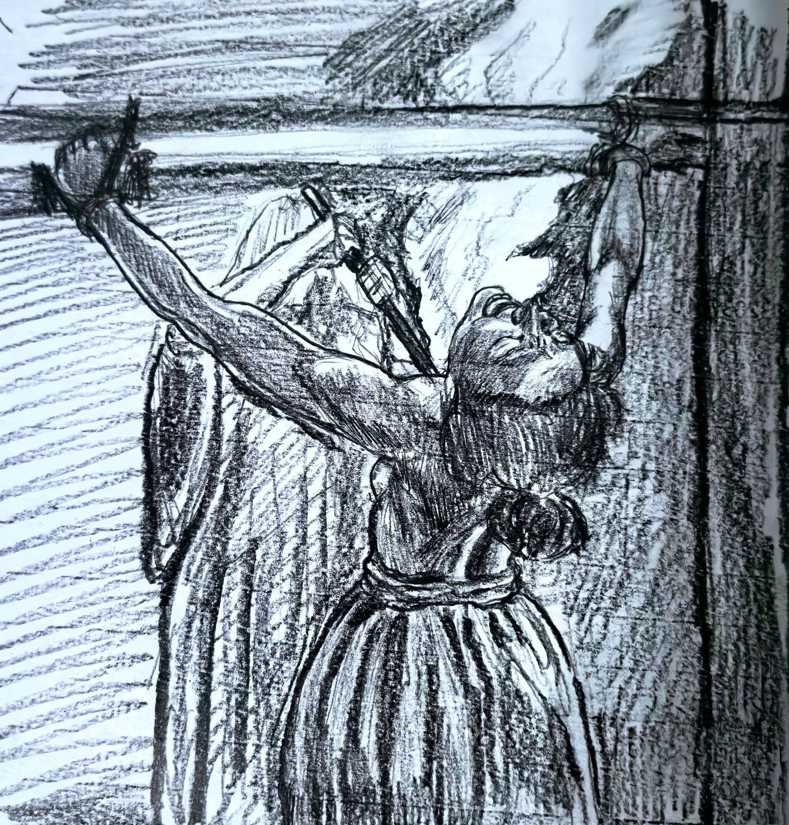“Baroness, my lady, the baron, your husband, ordered me to punish you in this way for betraying him with the captain of the guards. He also told me to tell you that your lover was first castrated and then hanged.”
