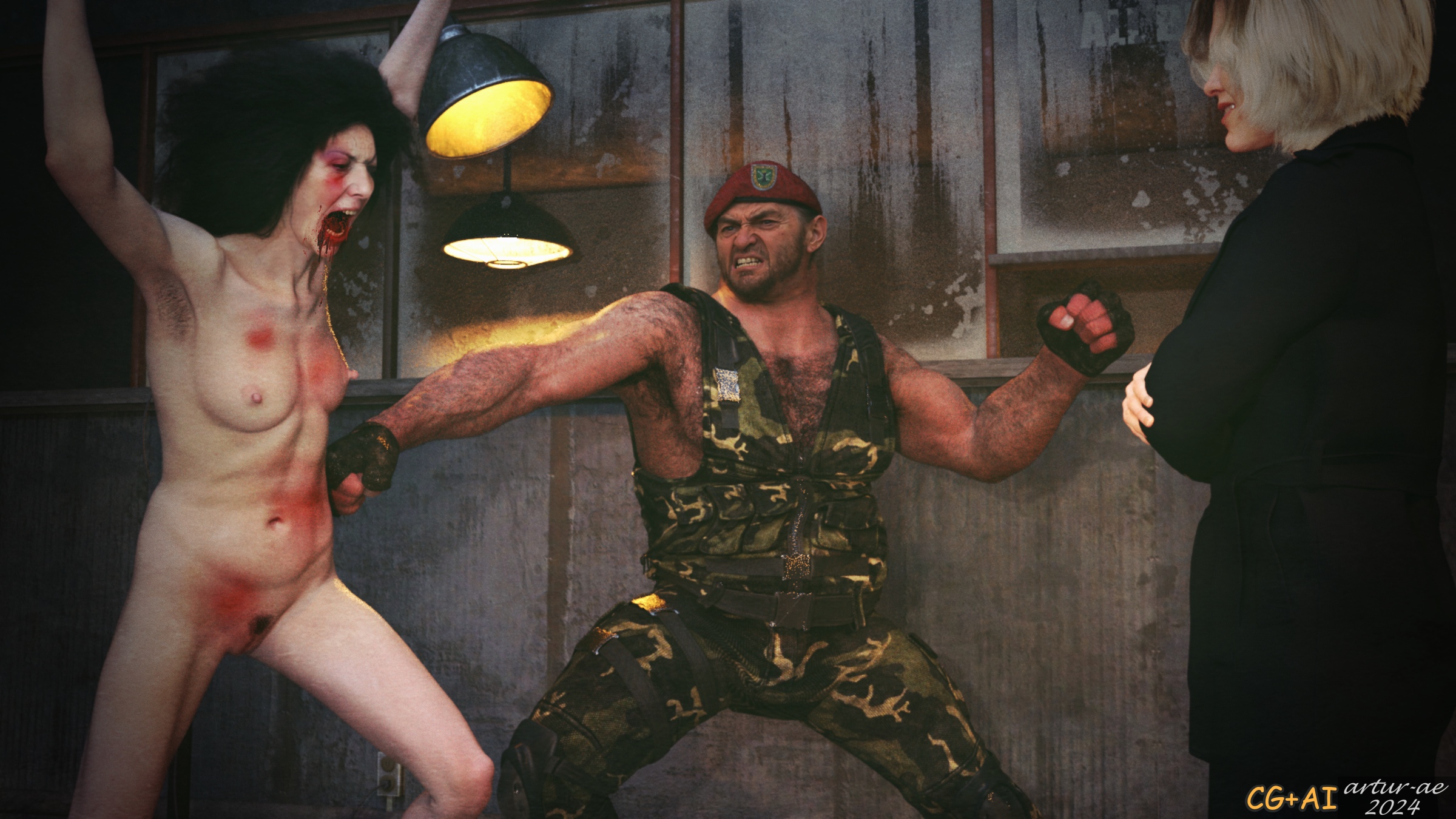 A kindergarten teacher in her forties is being disciplined. Every time the minister asks, “Do you understand?” the employee brutally beats the naked body of the kindergarten teacher.